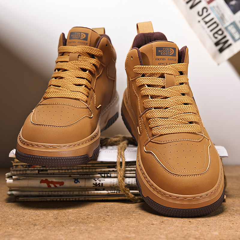 冬季 加绒靴子百搭高帮休闲皮鞋 男鞋 潮流男士 韩版 马丁靴男2025新款