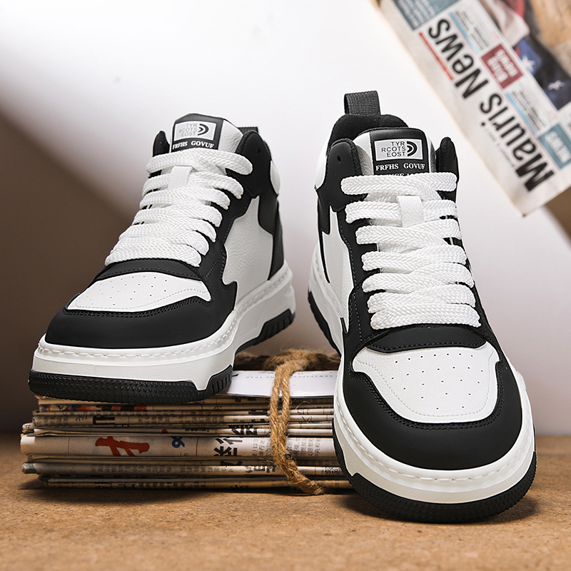 男鞋 子学生运动鞋 新款 皮面鞋 秋冬高帮休闲鞋 电池熊猫鸿星尔克板鞋
