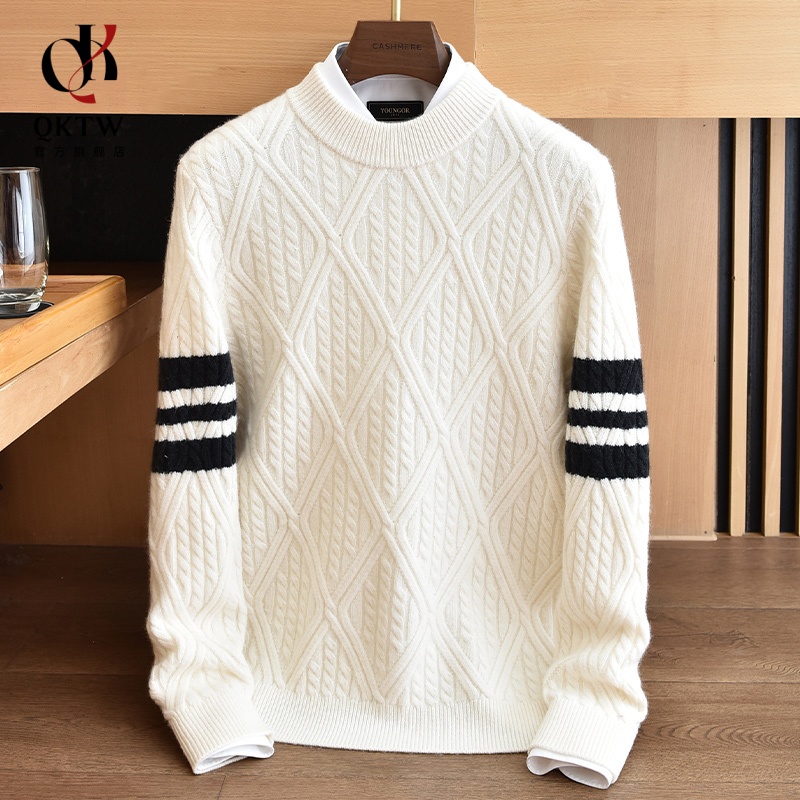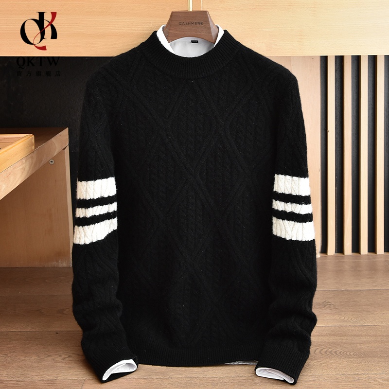 毛衣羊绒衫 春竹2025秋冬新款 100%山羊绒复古绞花半高领羊绒套衫
