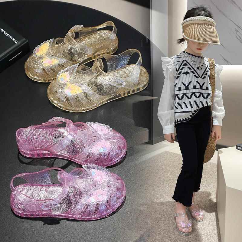 可踩水小女孩涉水鞋 公主2025新款 女童水晶塑料凉鞋 儿童罗马果冻鞋