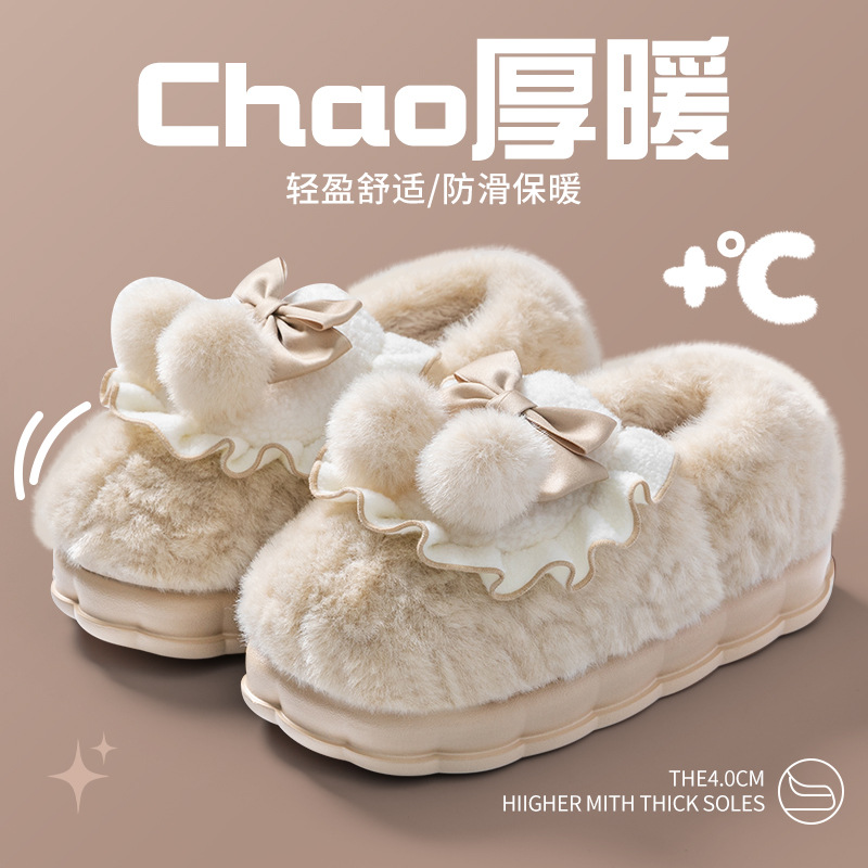 女款 厚底保暖毛毛绒防滑月子棉鞋 冬季 爆款 女士外穿 2025新款 棉拖鞋