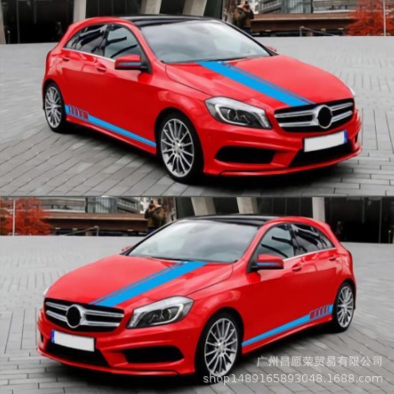 侧裙条纹汽车机盖后视镜整车贴纸拉花 车身腰线贴 230外贸爆款