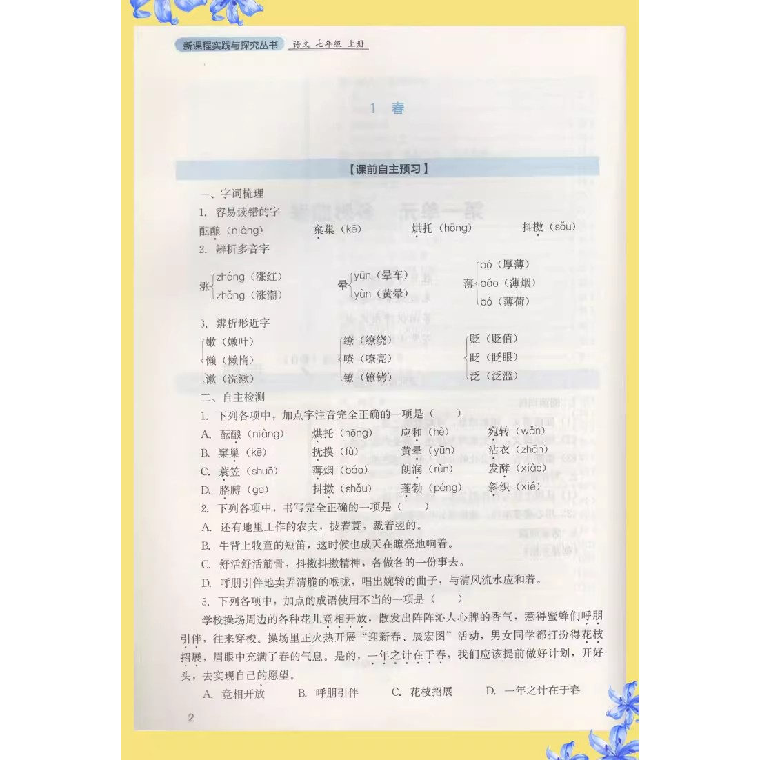 四川教育出版 2025秋 7年级上册初中语文教材同步练习册教辅资料书含答案 四川专用 社 新课程实践与探究丛书语文七年级上册人教版