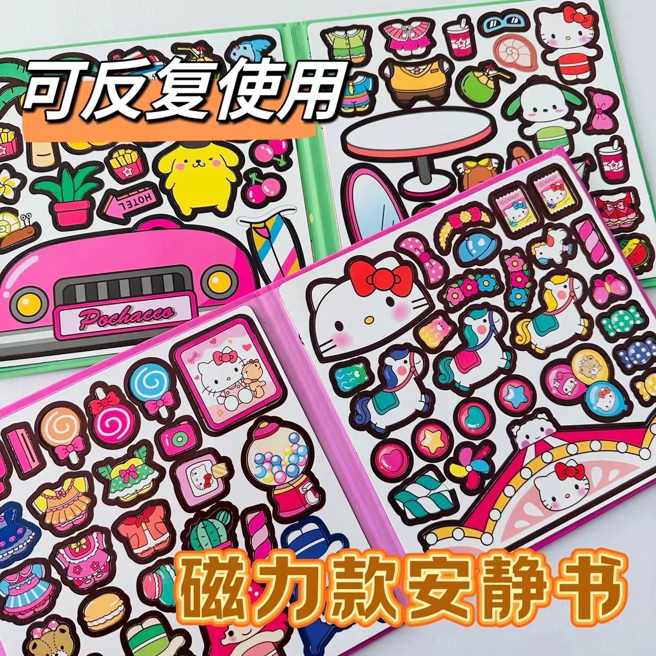 库洛米磁力安静书新款 贴纸女童贴画免裁剪 女孩玩具儿童磁吸贴换装
