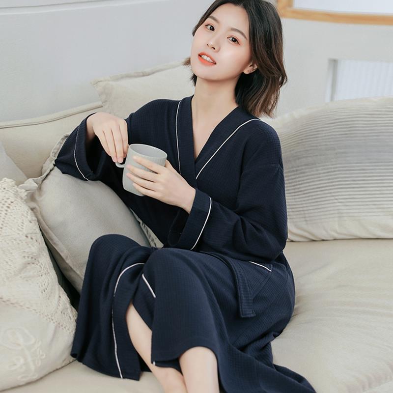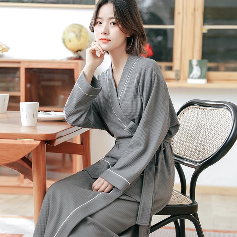 男士 秋冬浴袍女款 白色睡衣薄款 棉质华夫格浴衣秋款 睡袍1009c 季