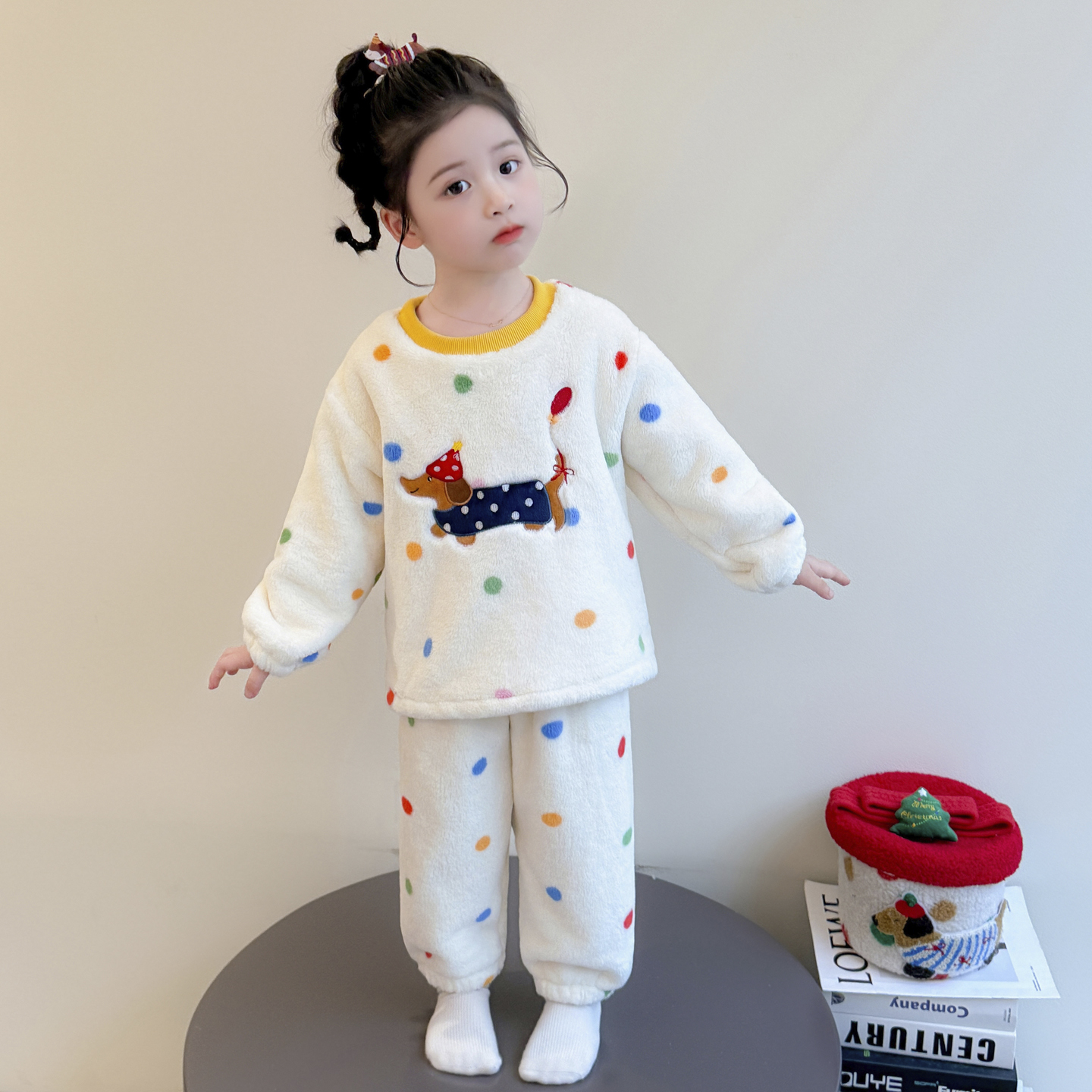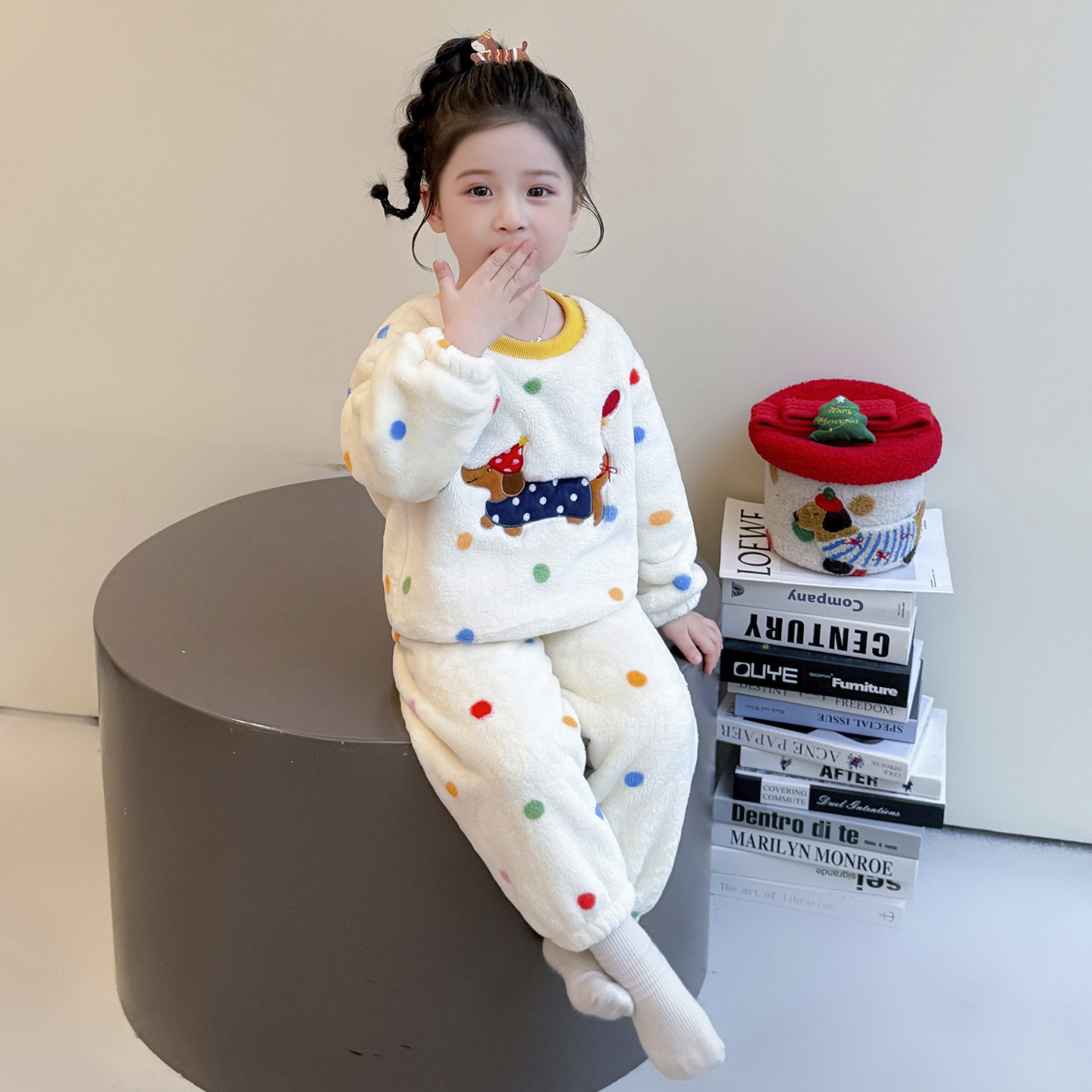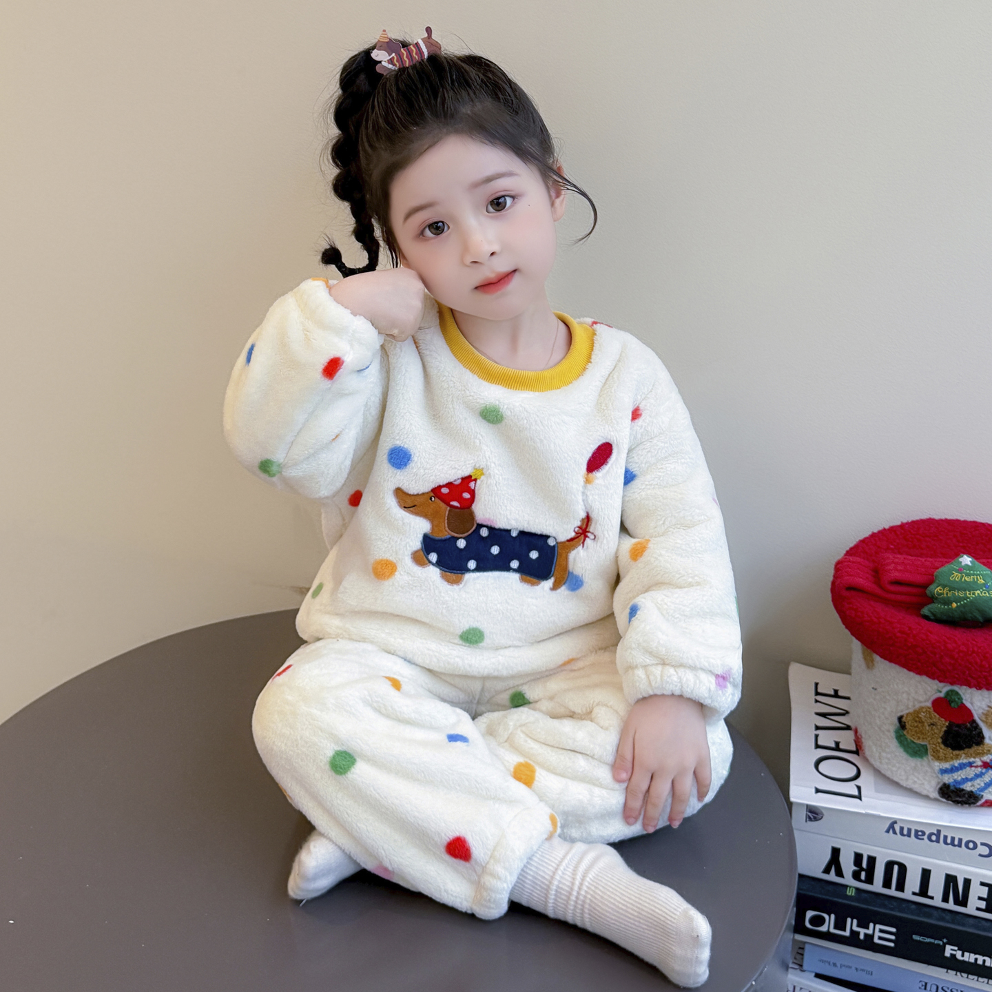女童睡衣套装 秋冬法兰绒女宝宝儿童珊瑚绒家居服保暖休闲 2025新款