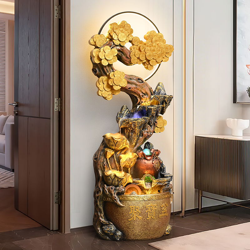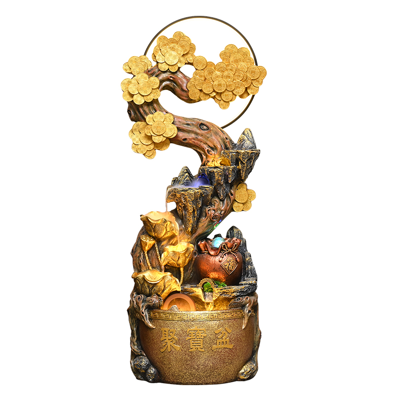 中式 摇钱树流水摆件循环水店铺公司家居客厅风水轮开业招财摇钱树