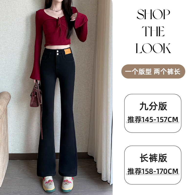 黑色加绒小脚铅笔裤 薄绒显瘦修身 女秋冬2025新款 超高腰紧身牛仔裤