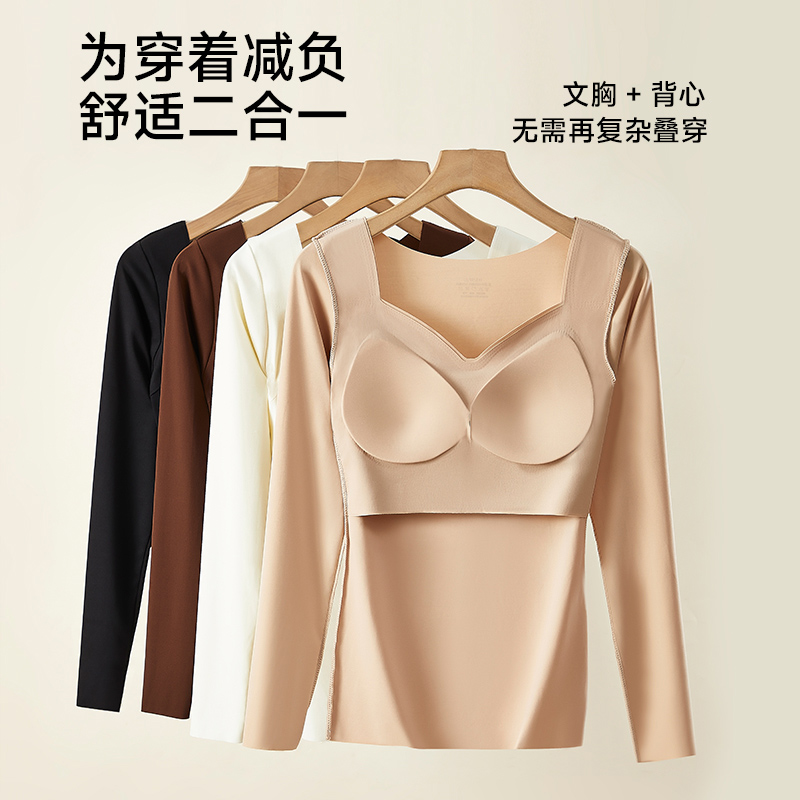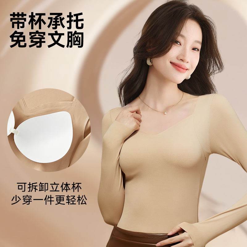 低领显瘦打底衫 秋冬内搭T恤女士V领长袖 上衣免穿文胸高弹无痕修身