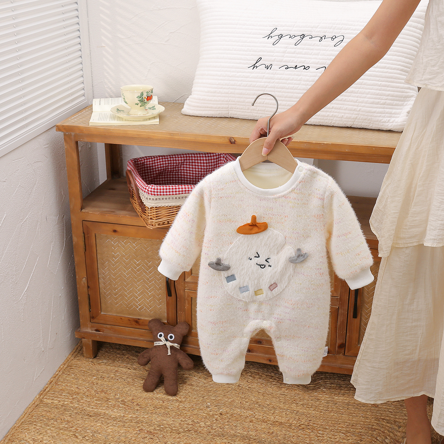 2025新款 女宝宝加绒连体衣满月百天保暖哈衣爬 婴儿衣服秋冬装
