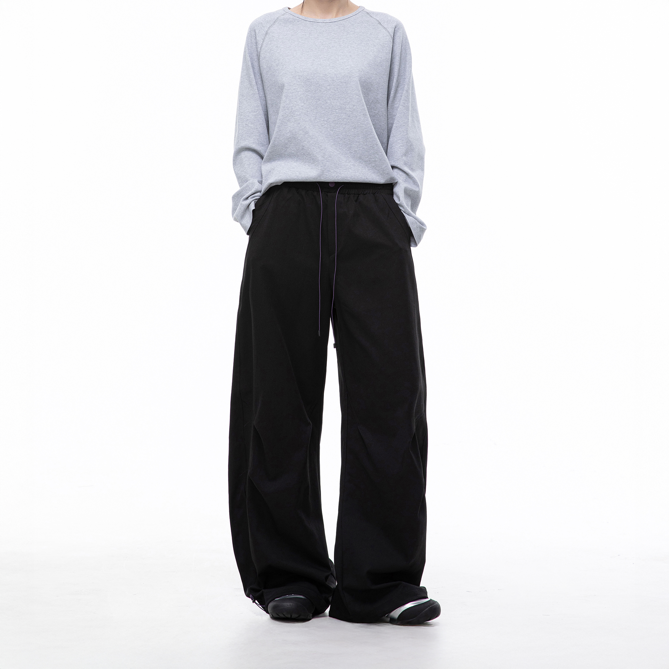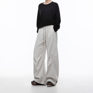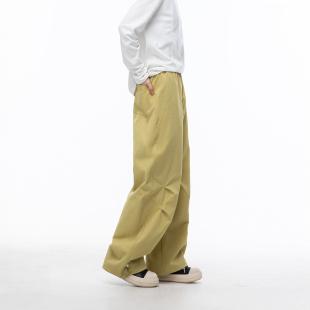 潮牌褶皱解构工装 情侣直筒宽松运动阔腿长裤 休闲裤 新款 女秋季 美式