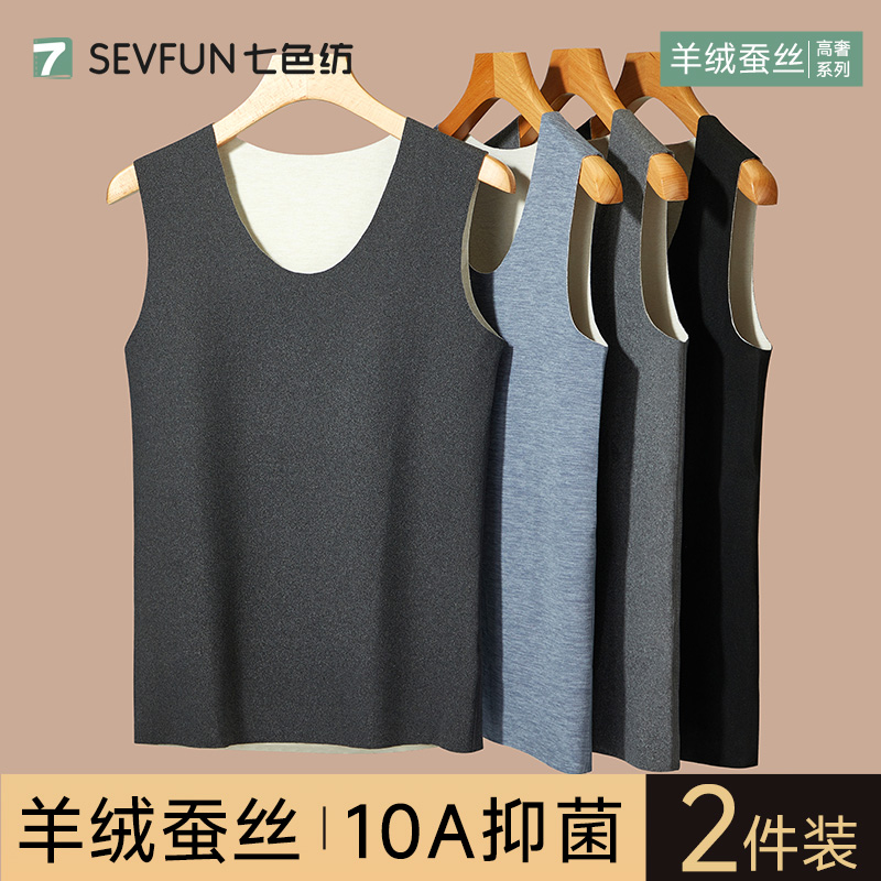 芬腾羊毛蚕丝保暖内衣男绒德无痕发热内穿加绒加厚打底背心冬上衣
