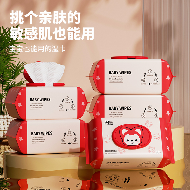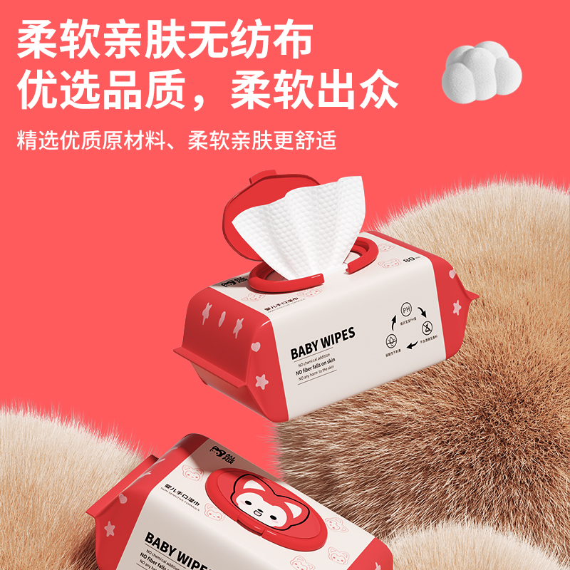 阿狸婴儿手口湿巾柔软亲肤加大加厚新生儿专用湿纸巾升级大包80抽