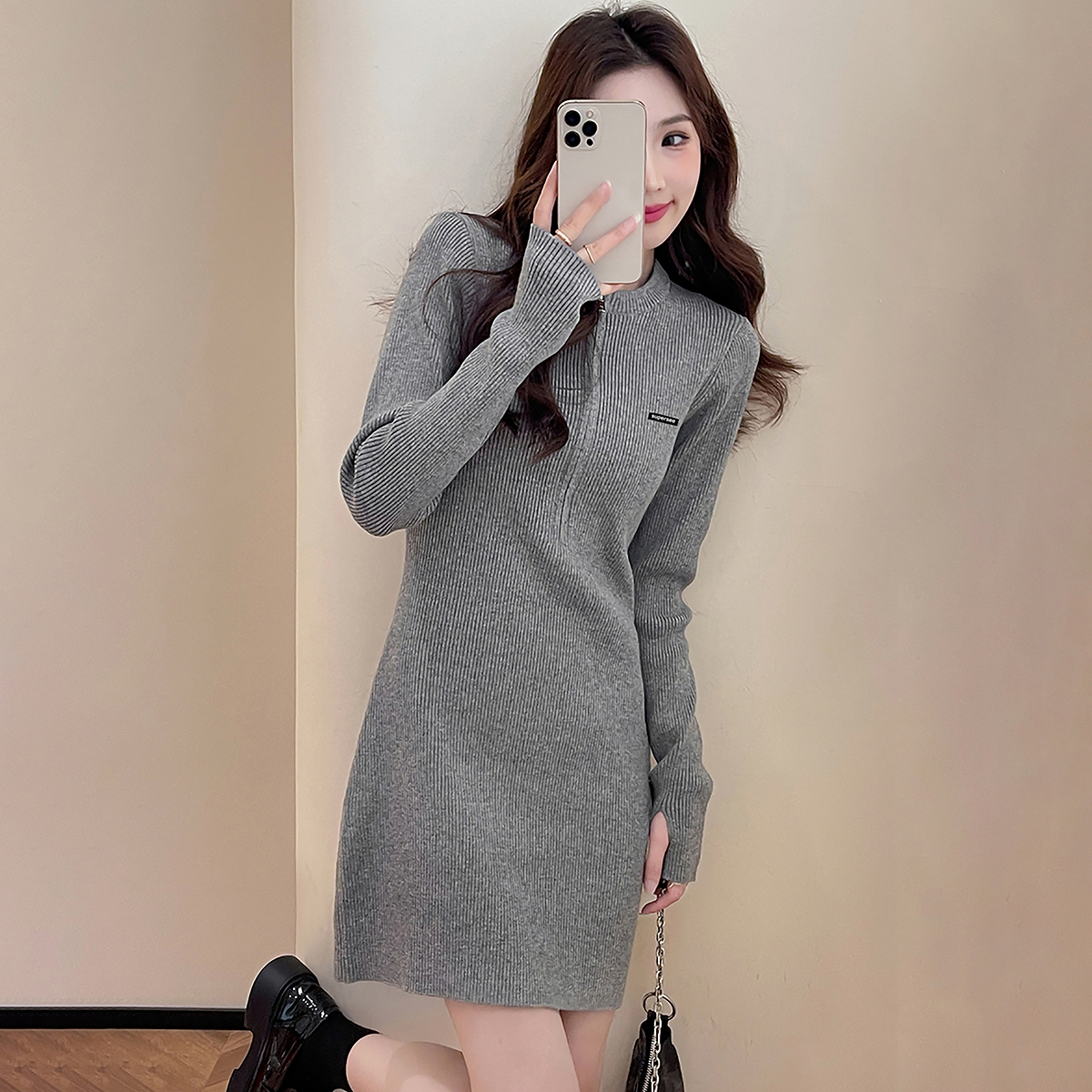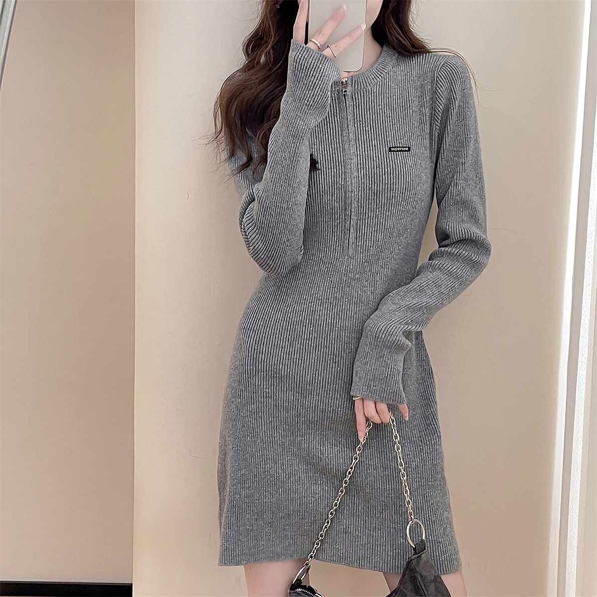 唐狮秋冬毛衣连衣裙女拉链半开襟显瘦长袖 气质减龄tu 高级感时尚