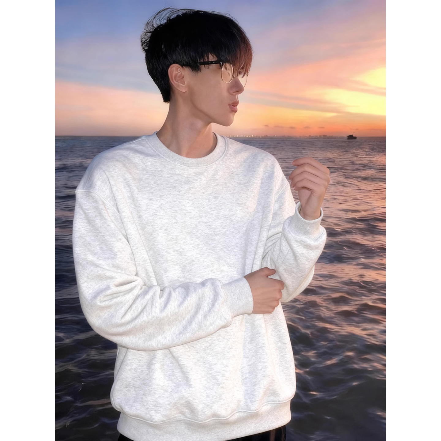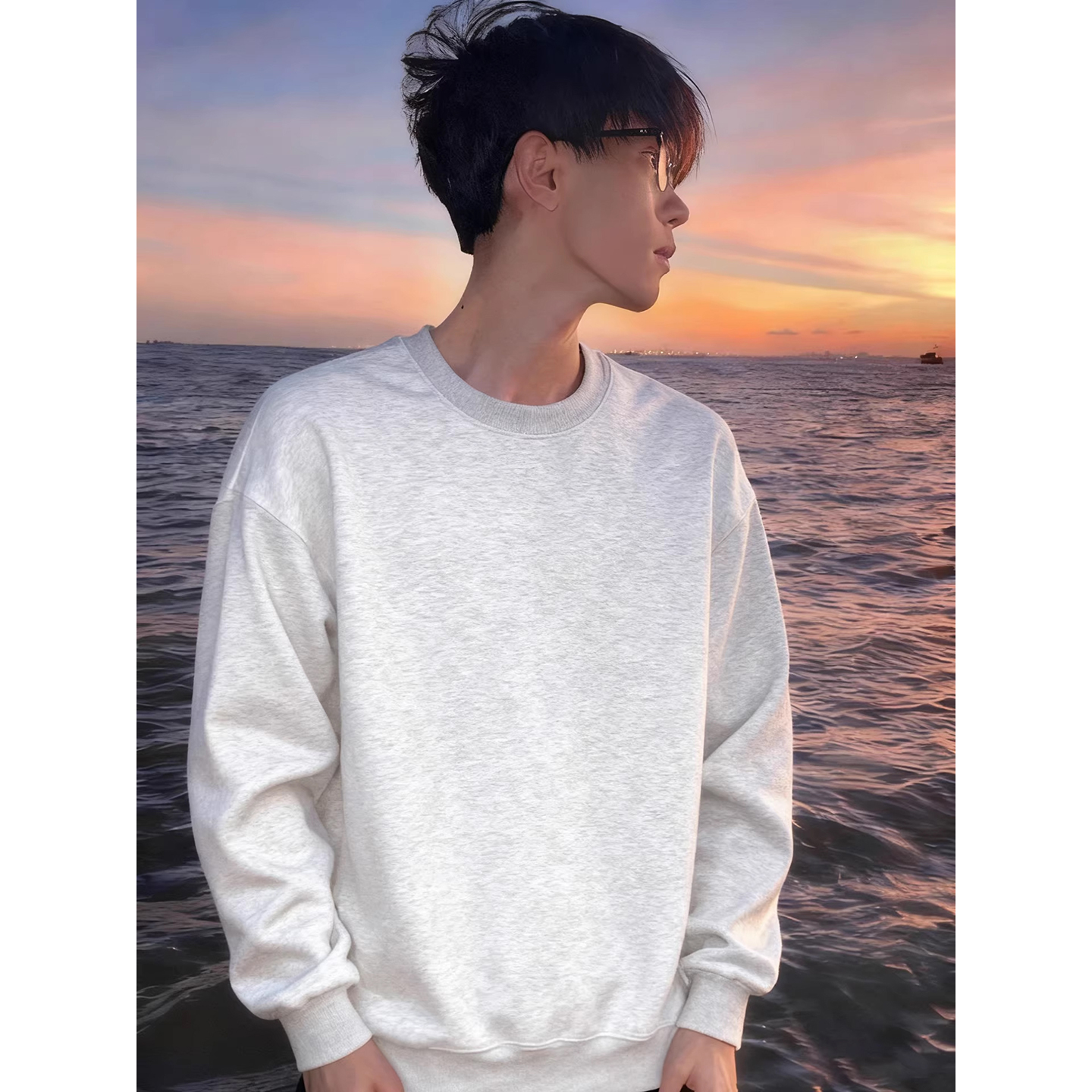 字母印花圆领T恤纯棉百搭情侣卫衣 男秋美式 青少年白色长袖 打底衫