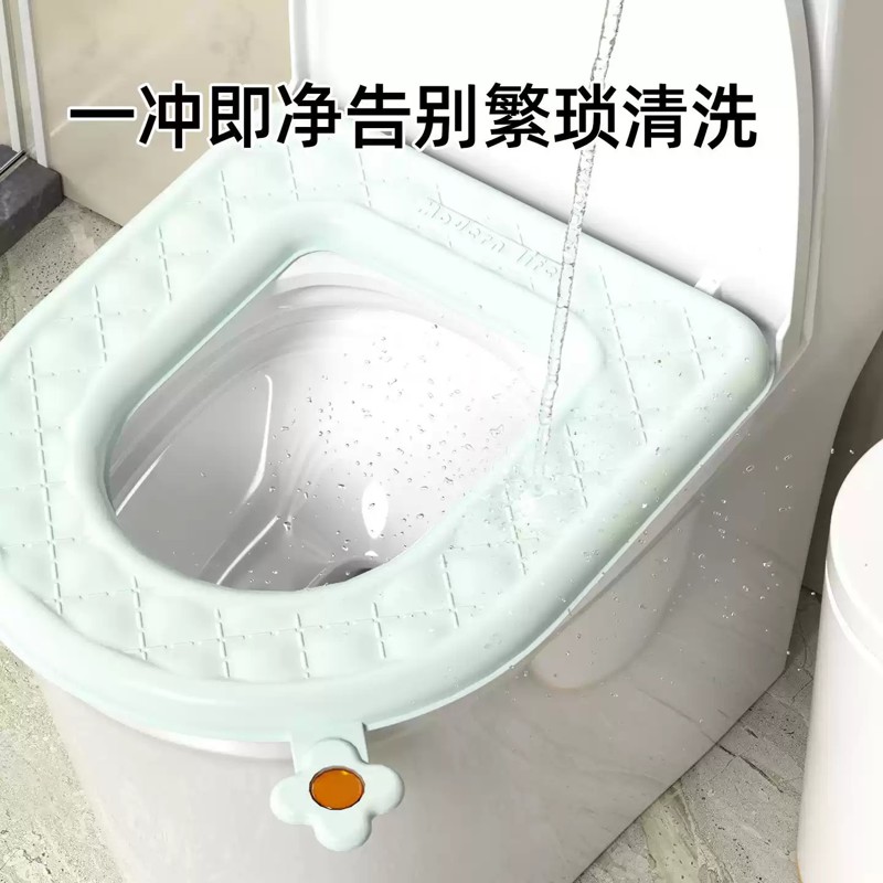 蓝浣熊香薰马桶垫加厚防水冲洗可折叠坐垫四季 通用坐便套带提手盖