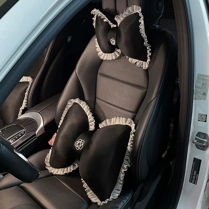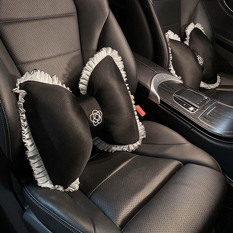 汽车头枕护颈枕车用靠枕腰靠套装 车载创意蝴蝶结女生车内座椅颈枕