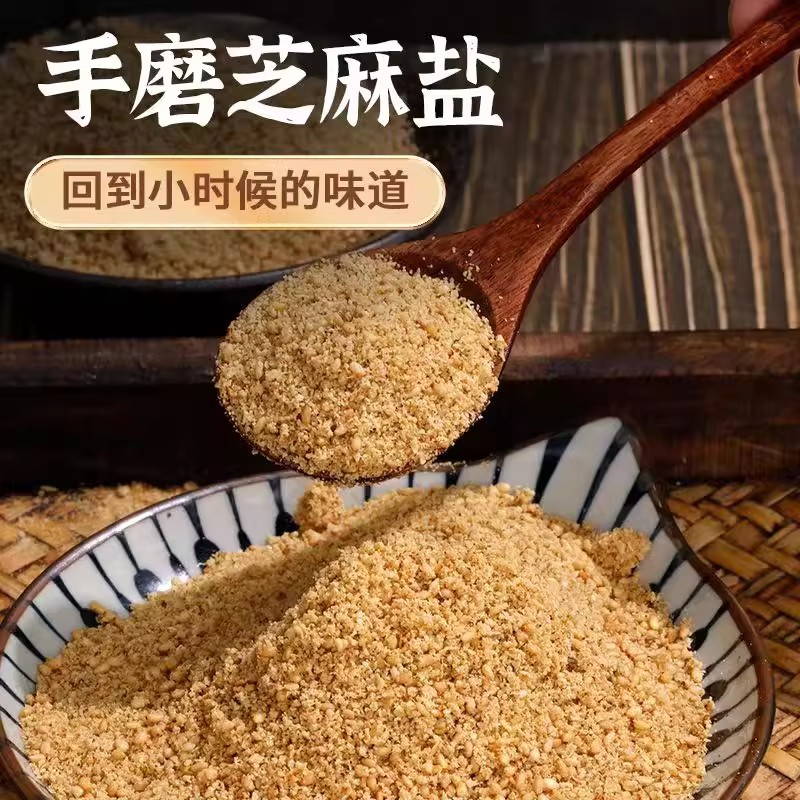 河南特产老式 手工芝麻盐农家熟白芝麻粉咸味拌面烧烤蘸料现磨500g