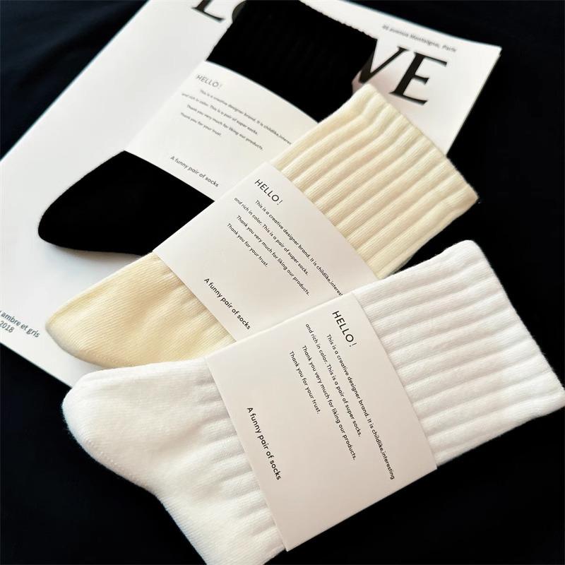 乐福鞋 黑色袜子女中筒纯棉秋冬季 堆堆长袜搭配小皮鞋 爆款 2025新款