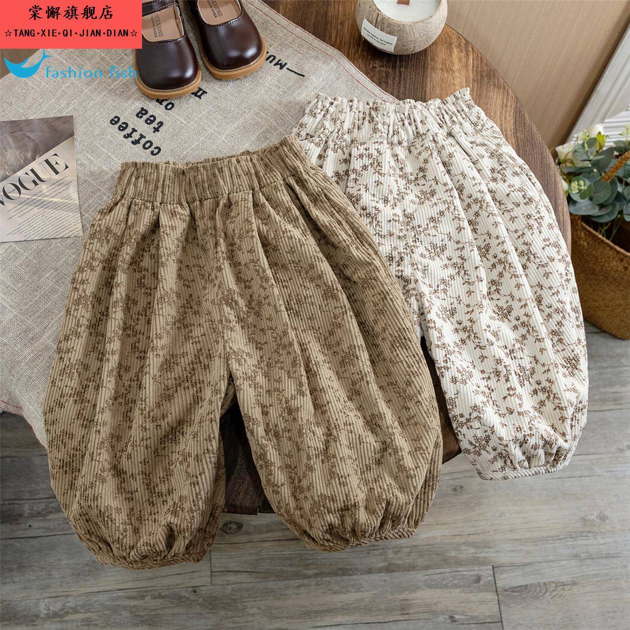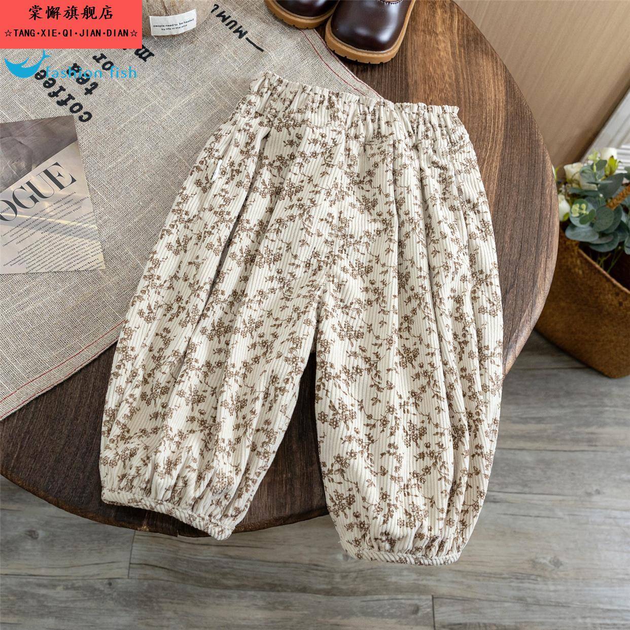 甜美洋气宽松外穿阔腿裤 女宝宝秋季 小女孩秋装 森系碎花休闲裤 新款