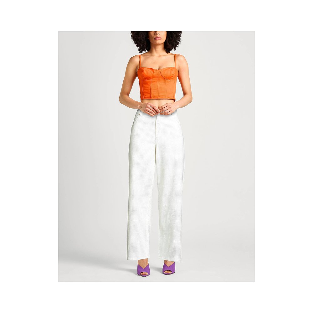 纯棉洗水破骨高腰阔腿九分牛仔裤 子女装 18415915 佐丹奴裤 设计师款