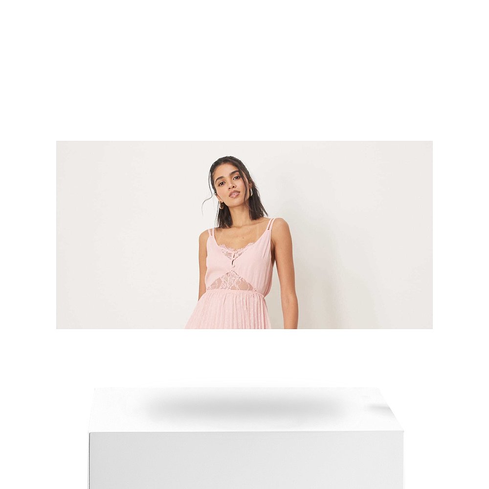 女士 ASOS 设计双层蕾丝拼块褶裥浅粉色中长连衣裙 潮奢 1h可退