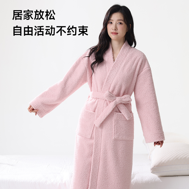 南极人半边绒睡袍女士加绒加厚冬季 加长睡衣两件套浴袍家居服新款