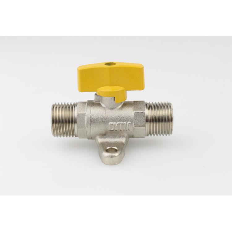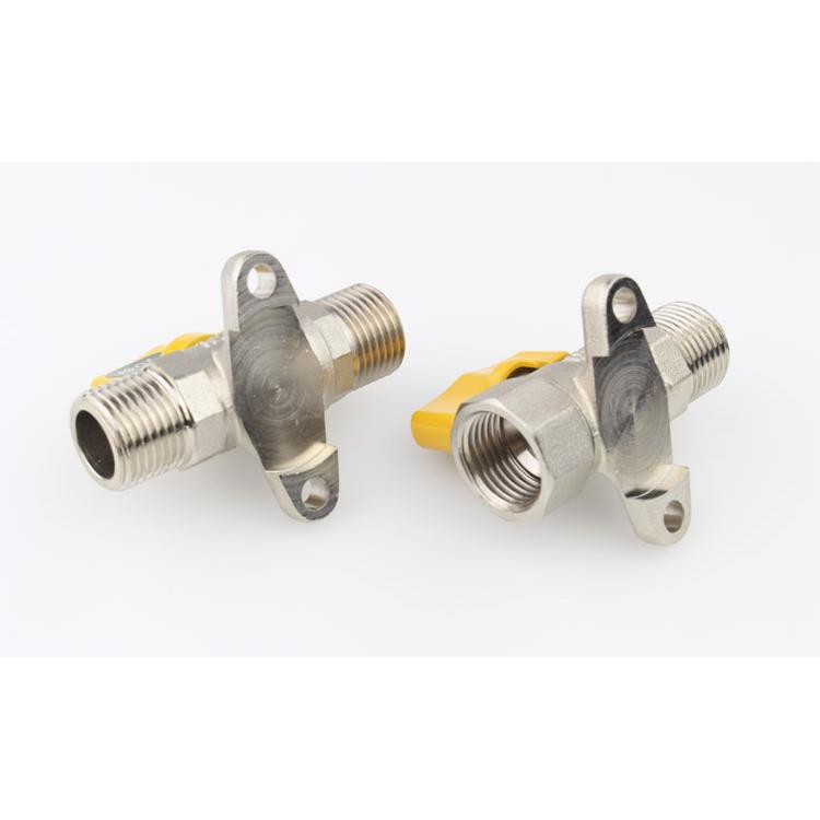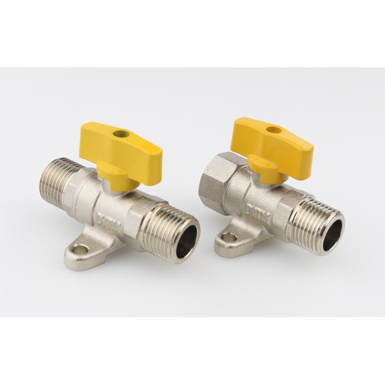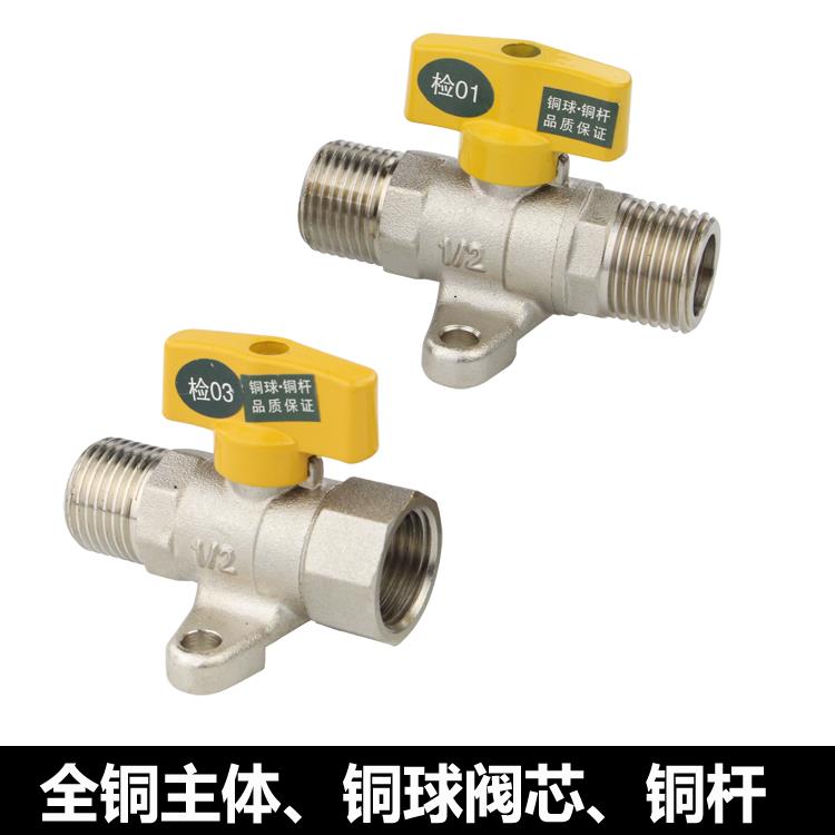 4分全铜加厚内外丝带固定座球阀双外丝黄柄外螺纹直通燃气阀