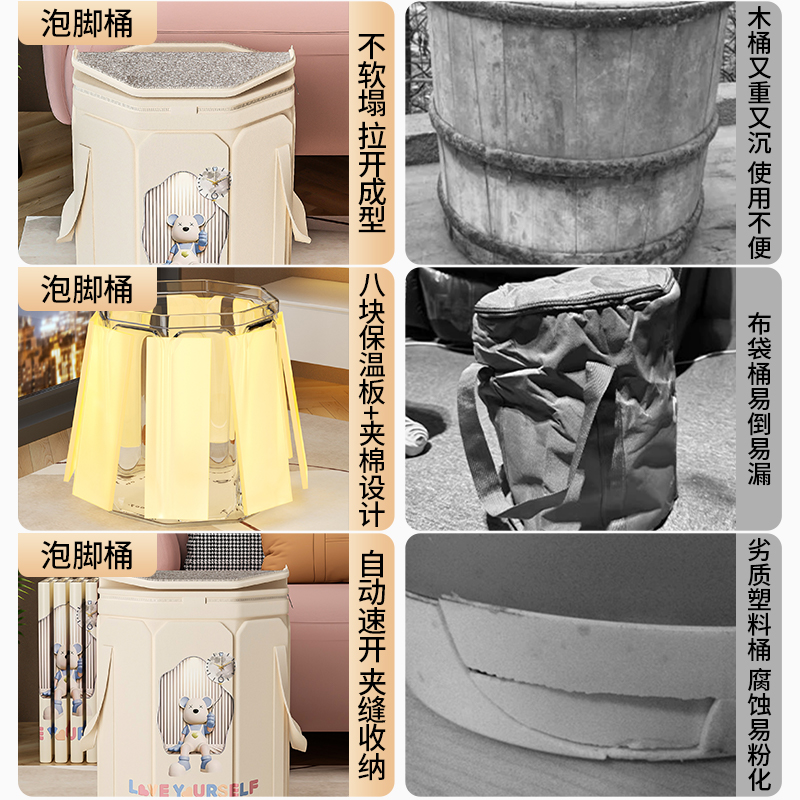 可折叠泡脚桶按摩过小腿足浴家用冬天保温泡脚袋洗脚盆恒温养生桶