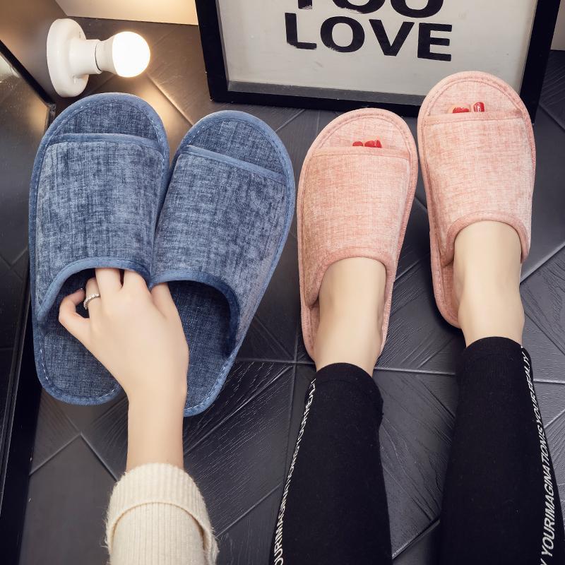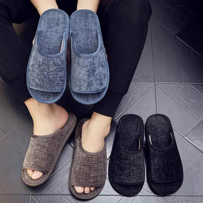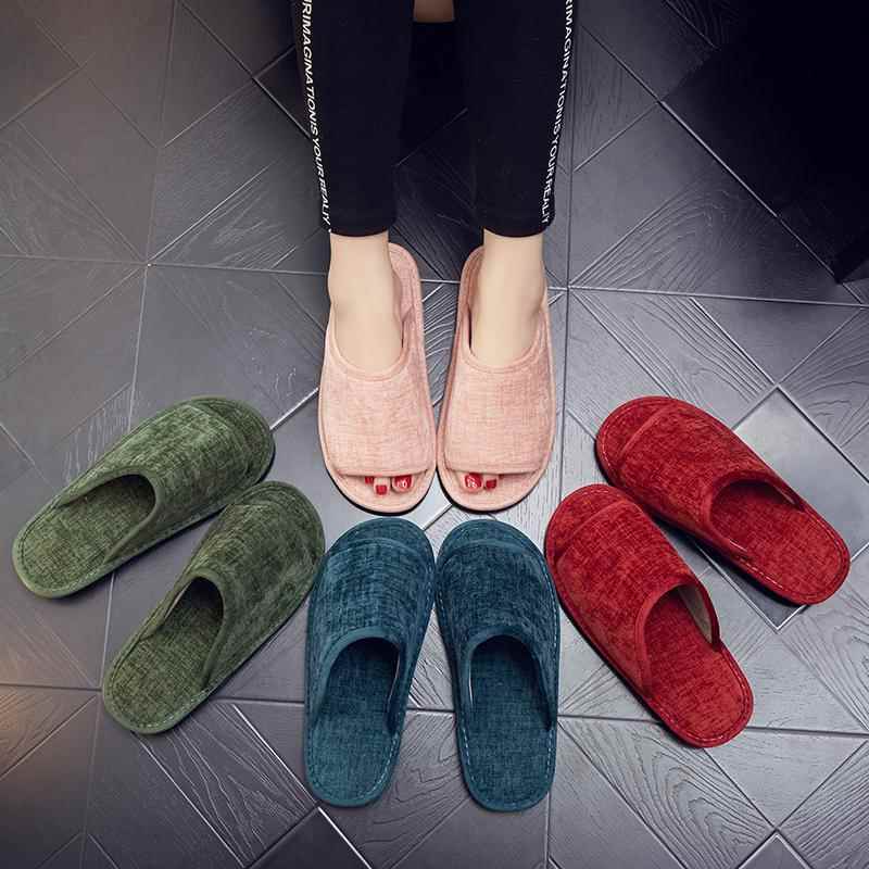 冬布艺女拖鞋 1006e 情侣居家用室内木地板防滑软底凉拖鞋