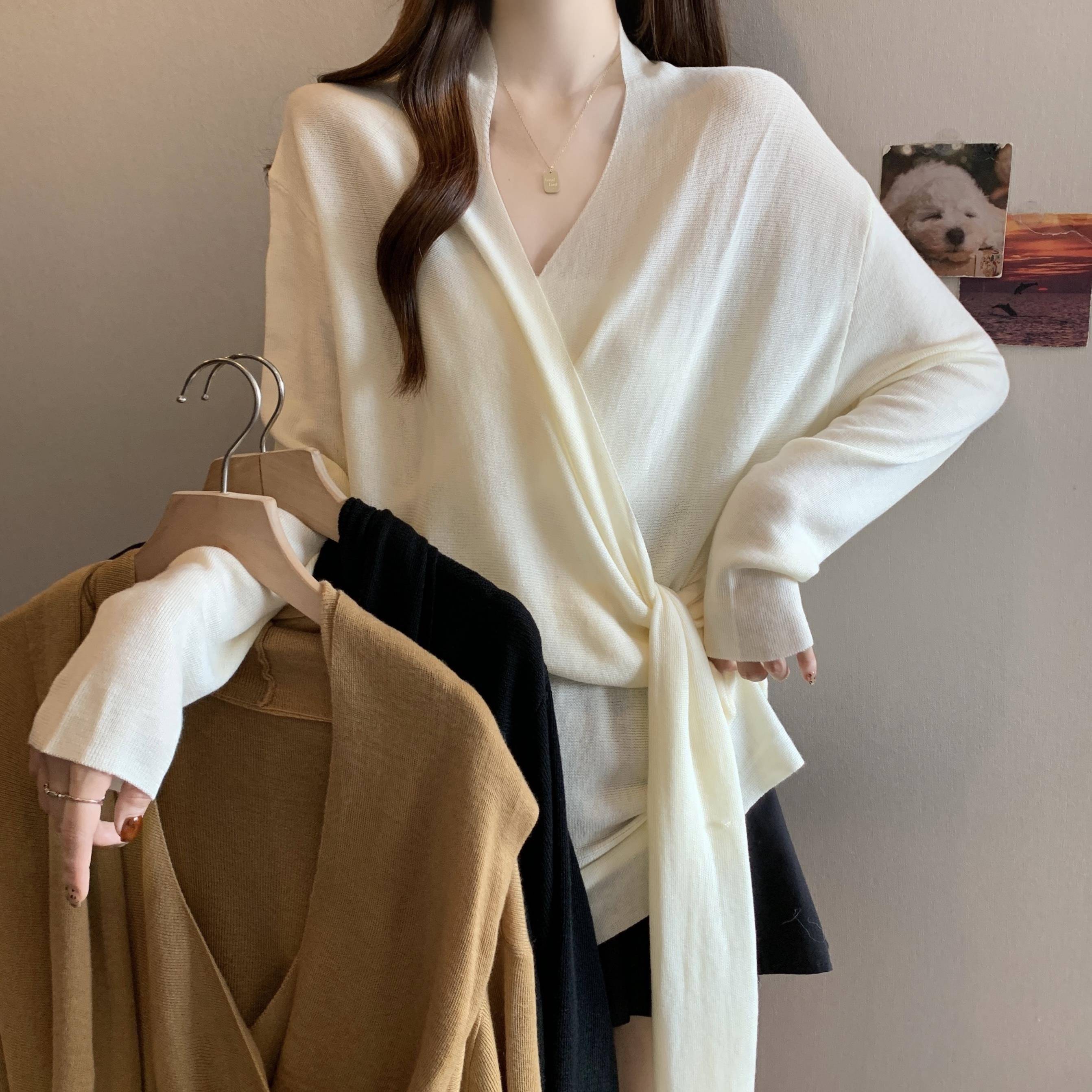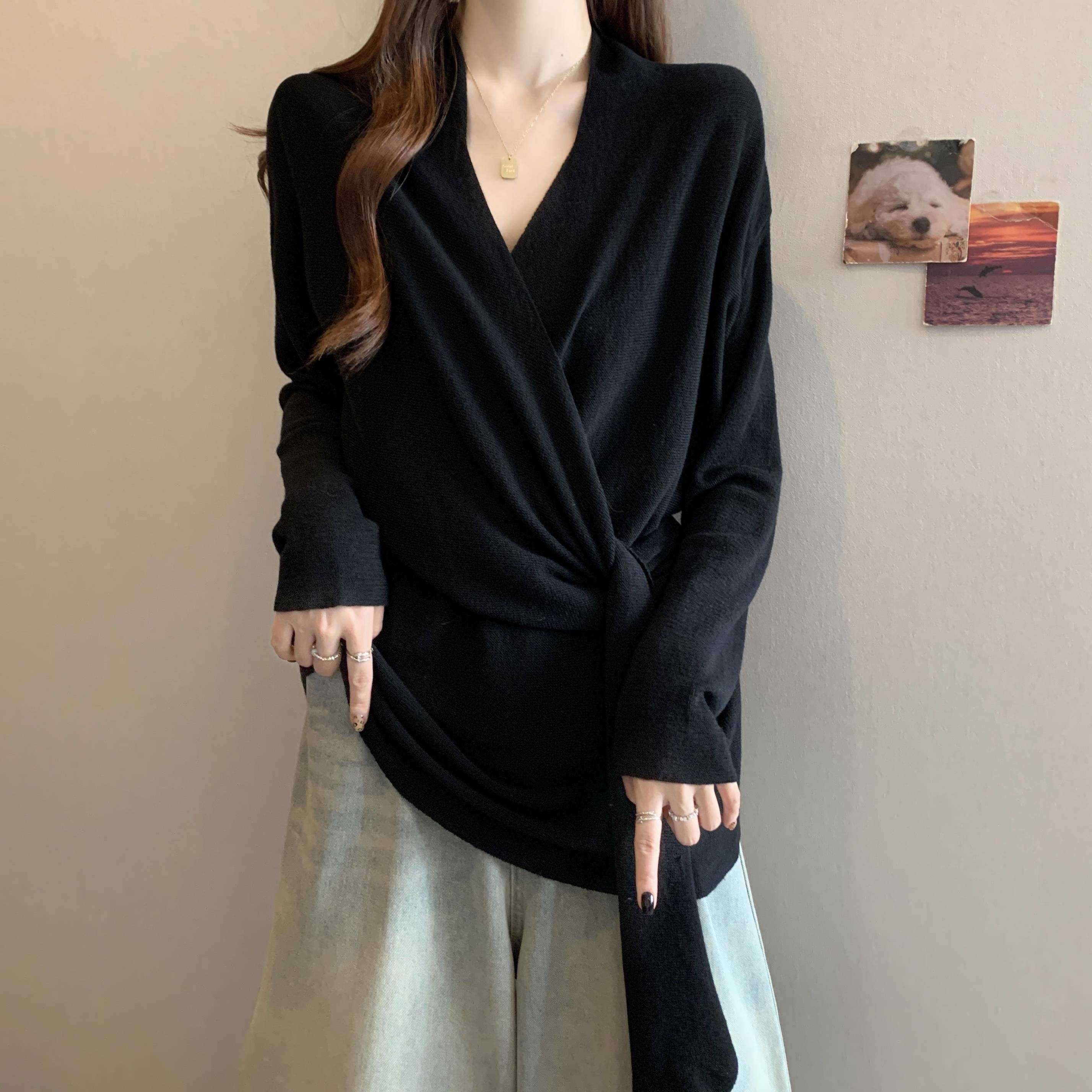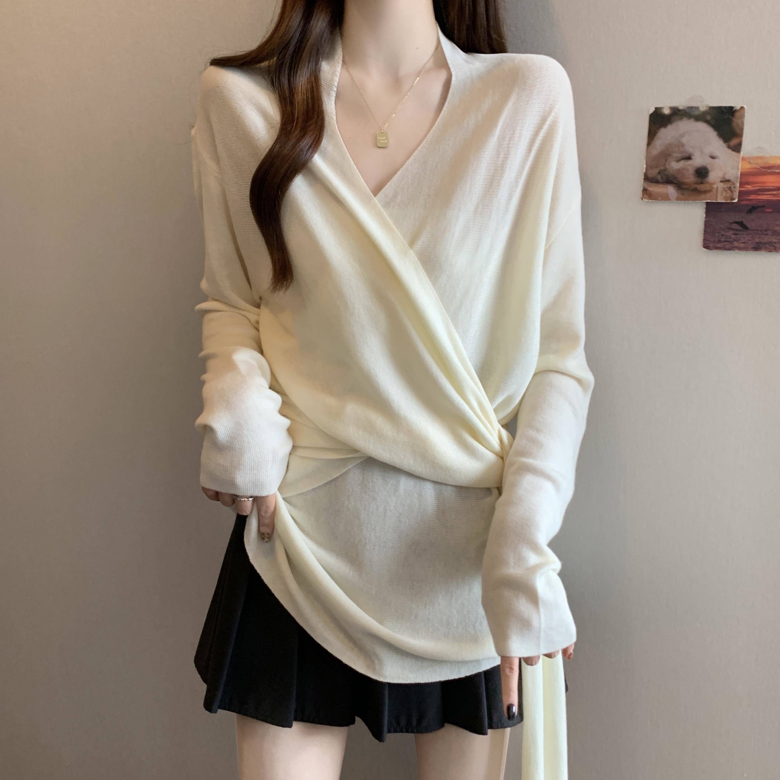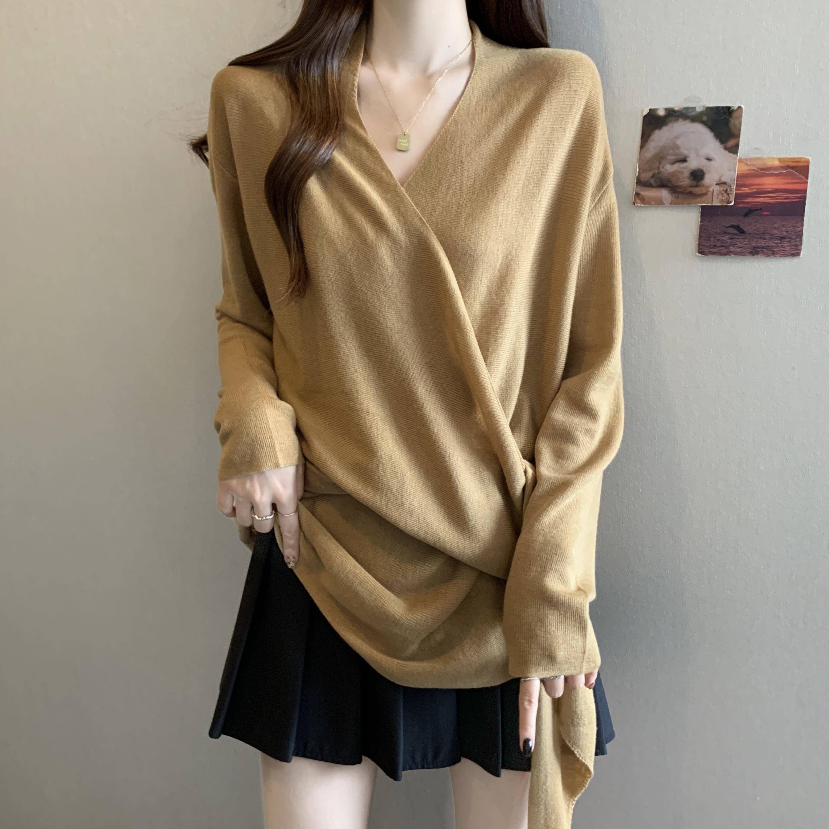 秋冬季 女秋冬内搭减龄长1008n 胖mm感遮肚显瘦v领不规则针织打底衫