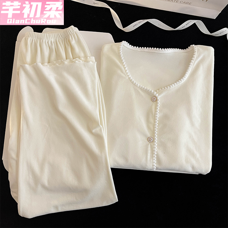 家居服套装 薄绒保暖长袖 加厚高级感 2025新款 海岛绒睡衣女春秋冬季