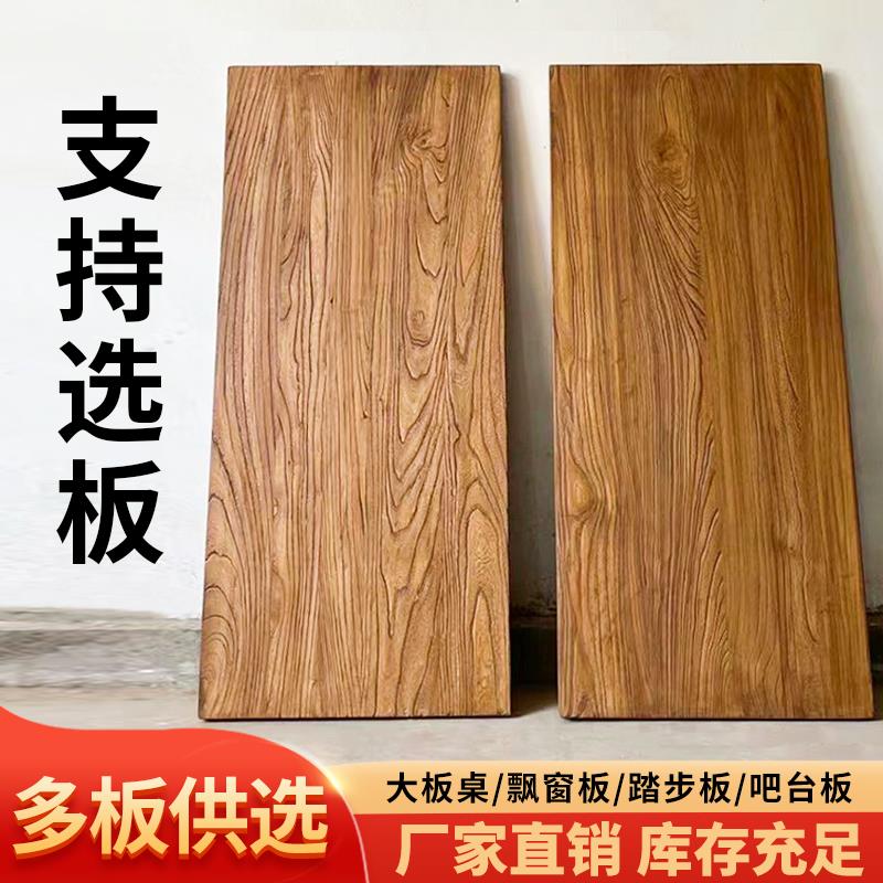 老榆木大板实木桌面板复古飘窗吧台板楼梯踏步板原木风化板可定制
