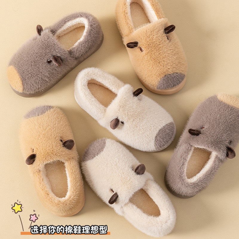 家居室内加绒加厚保暖可爱卡通毛毛拖鞋 棉拖鞋 2025新款 秋冬季 女款