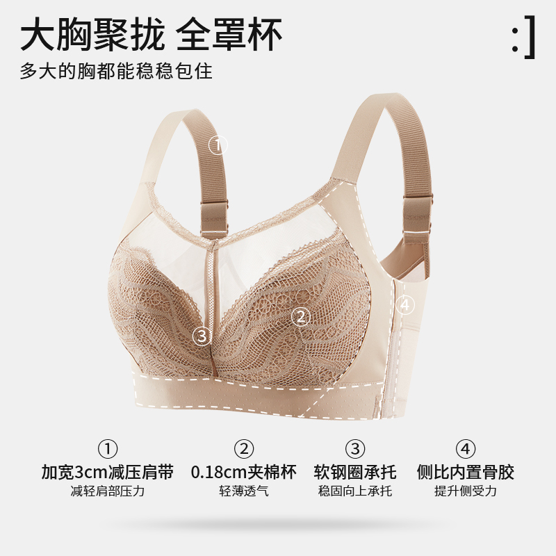 调整型全罩杯大胸显小内衣女薄款 透气软钢圈收副乳上托防下垂文胸