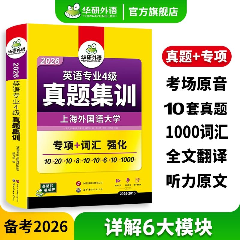 备考2026新题型英语专业四级历年真题试卷乱序版 华研外语英语专四真题集训词汇套装 词汇突破8000单词专项训练资料书 官方旗舰店