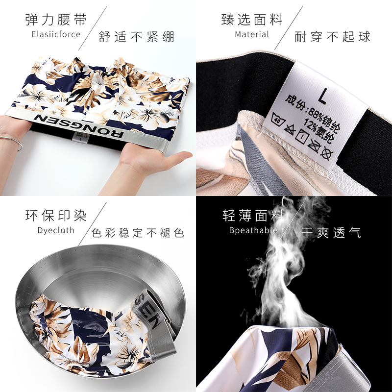 内裤 四角裤 男平角裤 透气舒适潮流个性 衩 夏季 蕉内绒绒超薄冰丝男士