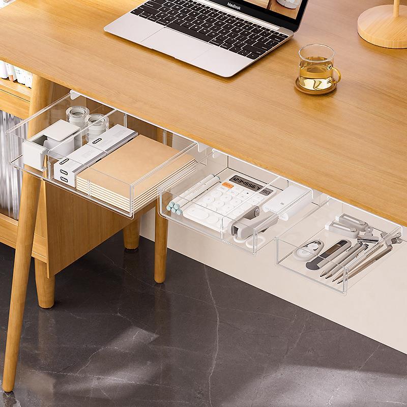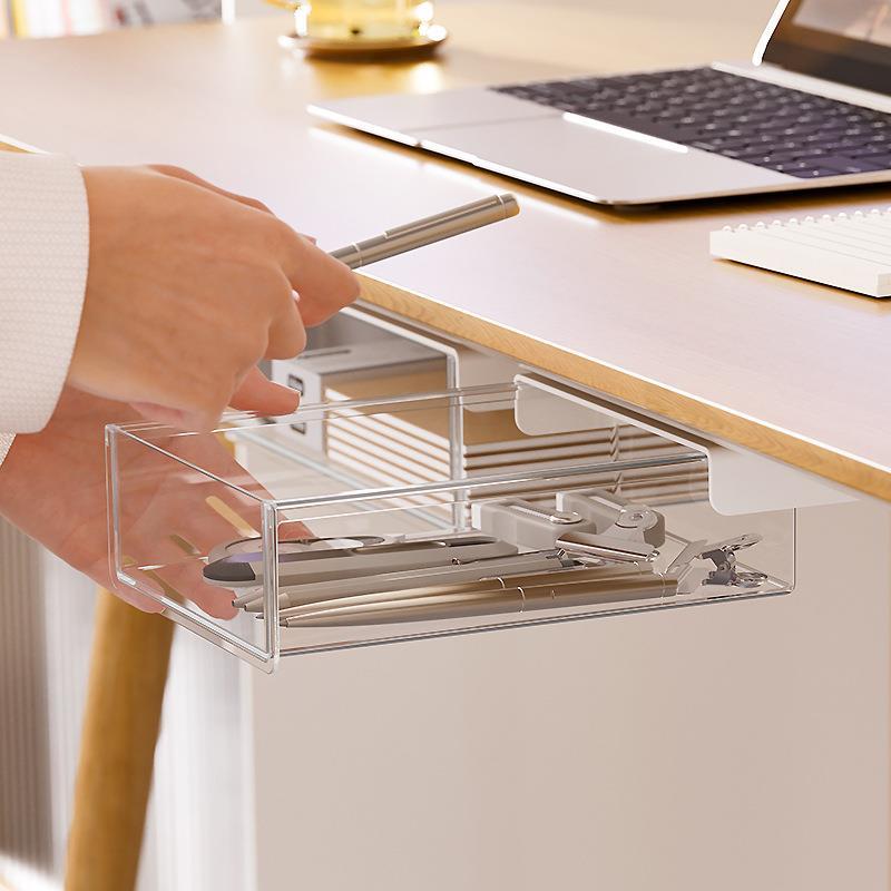 办公室组合桌下抽屉收纳盒悬挂隐藏式 家用办公桌下收纳塑料小抽屉