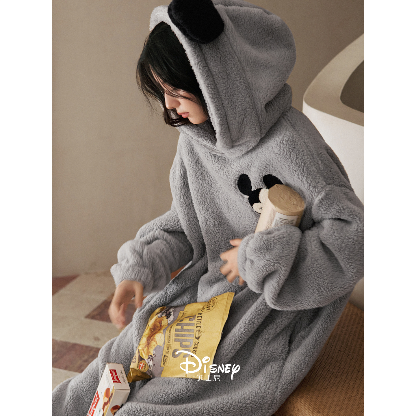 法兰绒连衣裙 加厚保暖珊瑚绒睡衣睡袍可爱大码 迪士尼睡裙女款 冬季