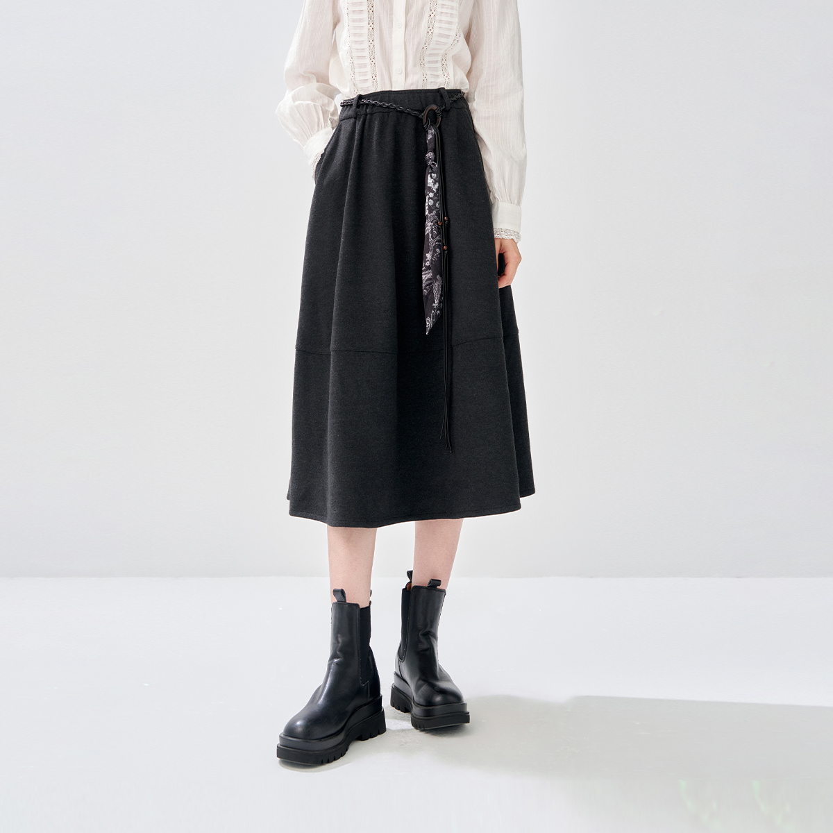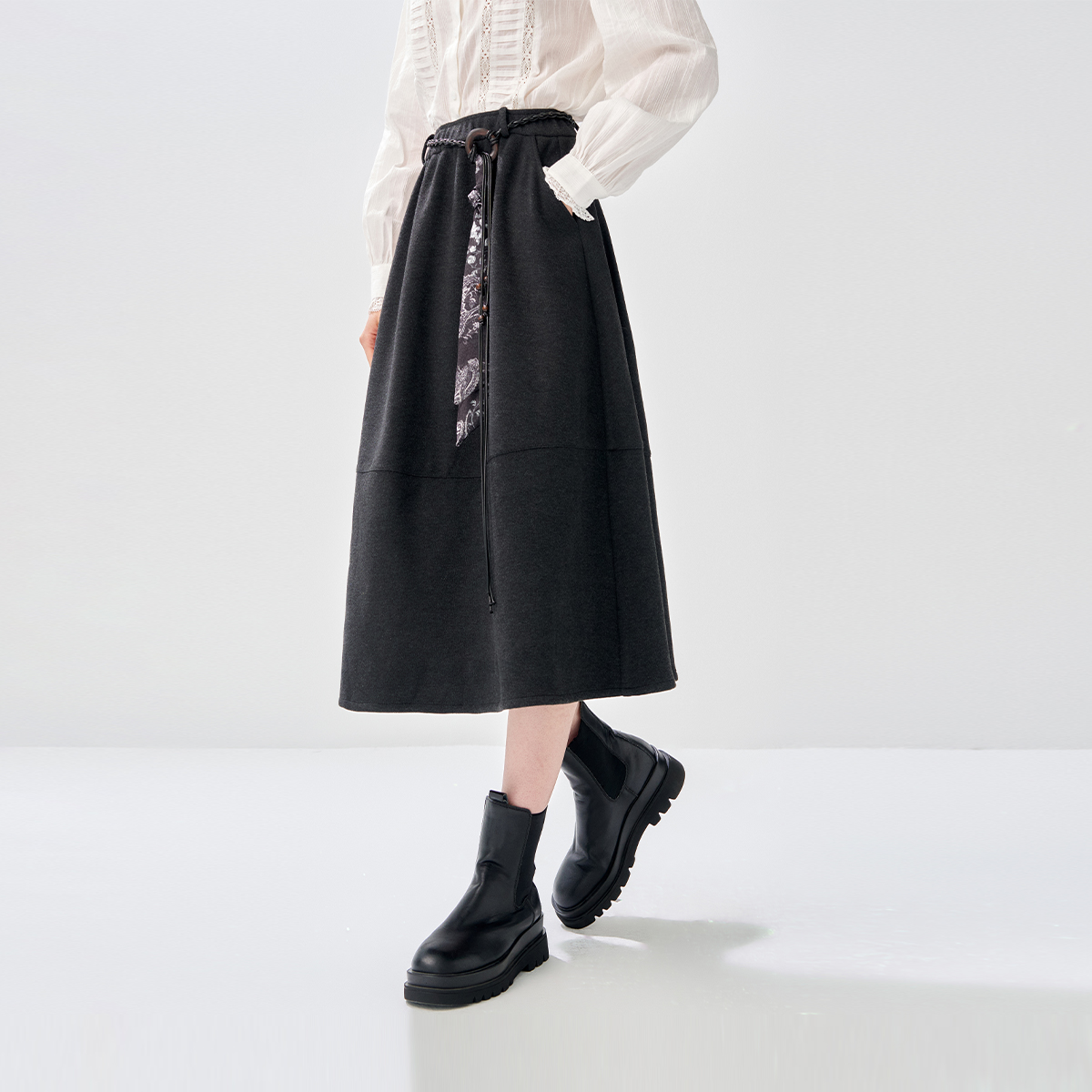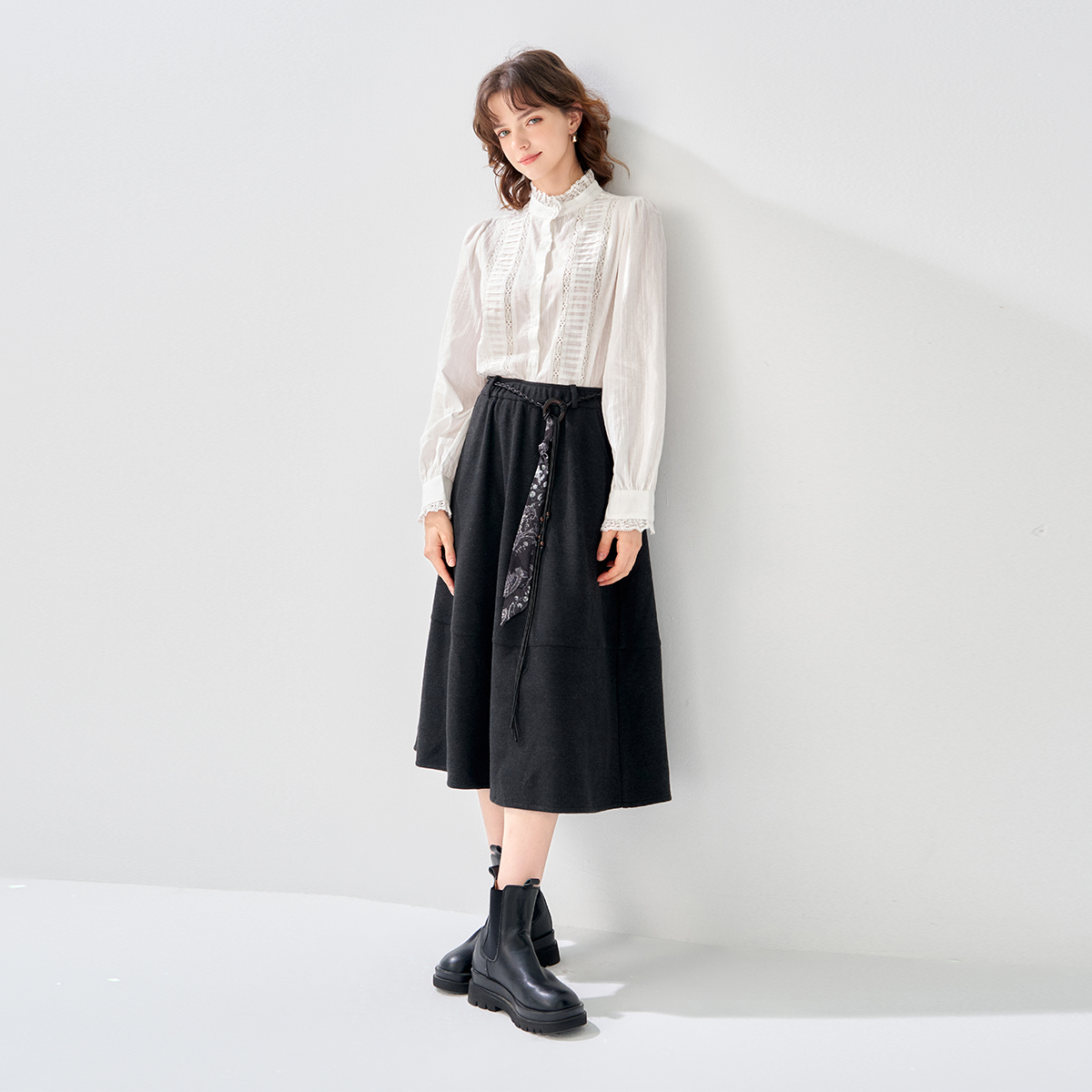 510457 木耳花边裙摆优雅美拉德半身裙子女装 三福长裙2025新款 冬季