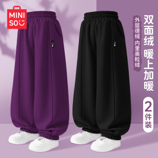 胖mm慵懒风松弛感加绒运动休闲裤 大码 女冬季 奶芙阔腿裤 子 黑色卫裤