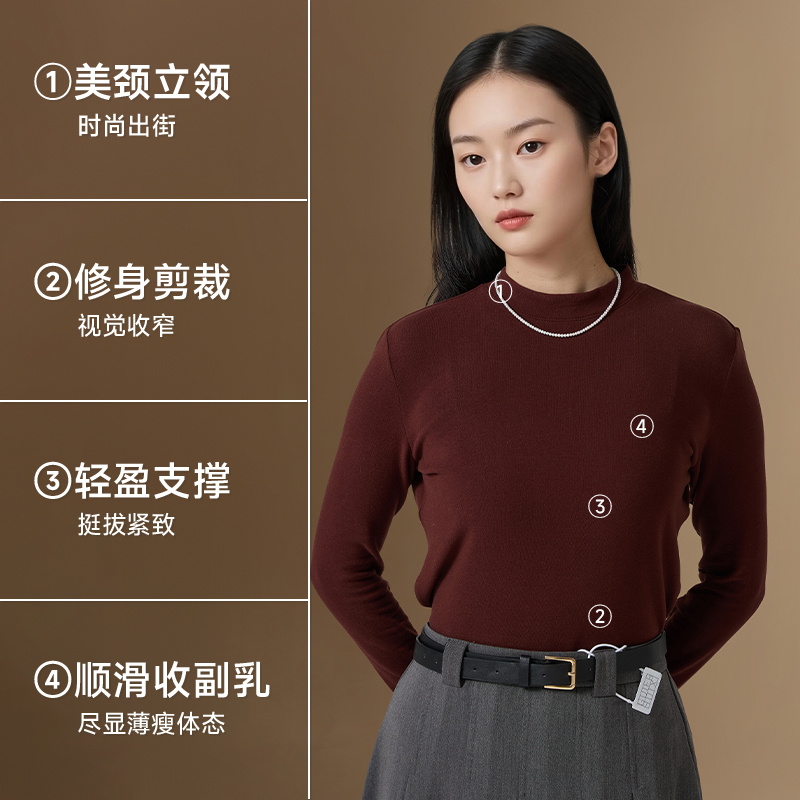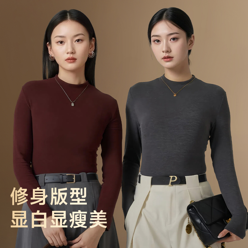 草本初色女士保暖上衣半高领秋冬纯色打底高弹可外穿