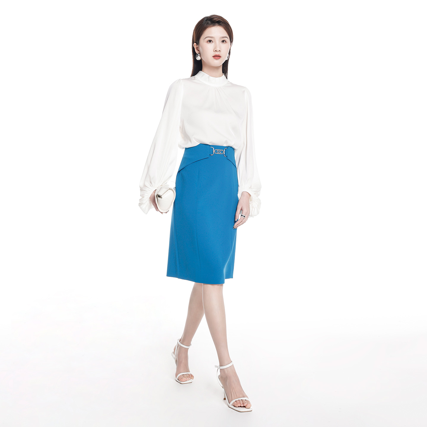 醋纤半身裙腰头装 新款 奕辰2025秋季 饰扣高腰a字裙女 商场同款