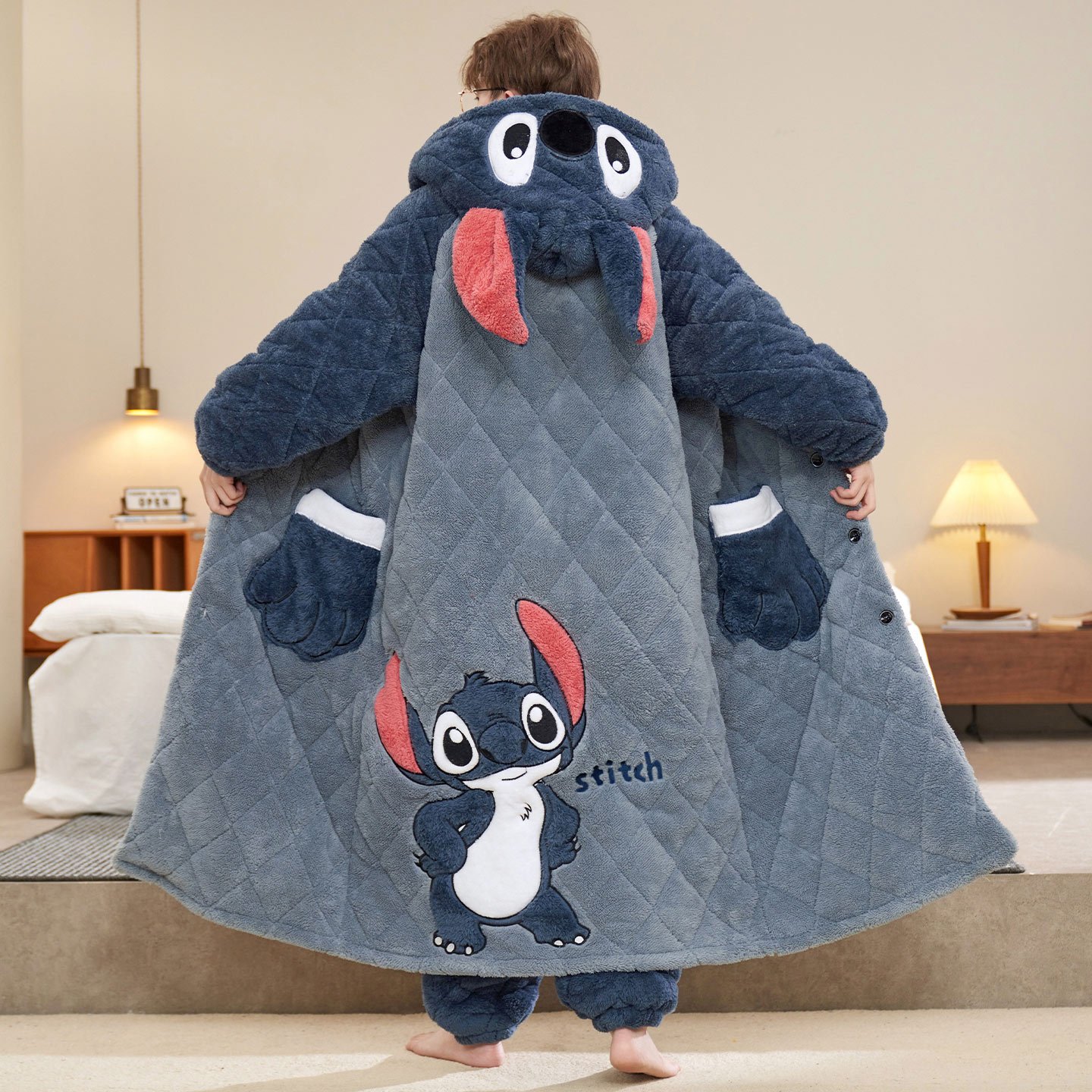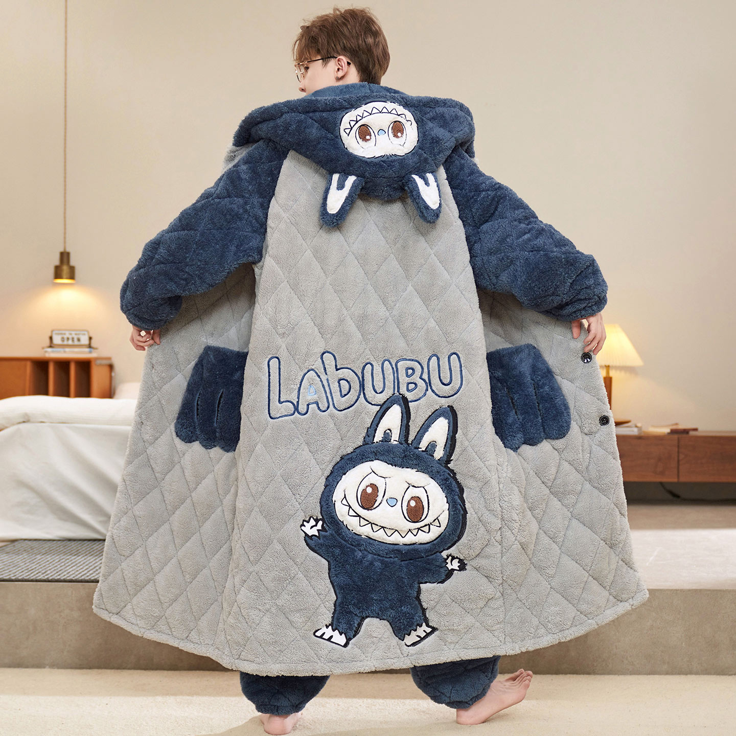 蜡笔小新浴袍家居服套装 男款 三层夹棉加大码 睡袍加厚长款 睡衣冬季