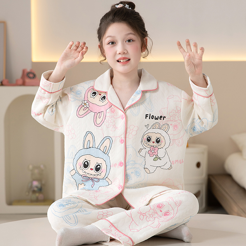 2025新款 加厚套装 大童女孩洋气家居服 夹层棉女童长袖 儿童睡衣冬季