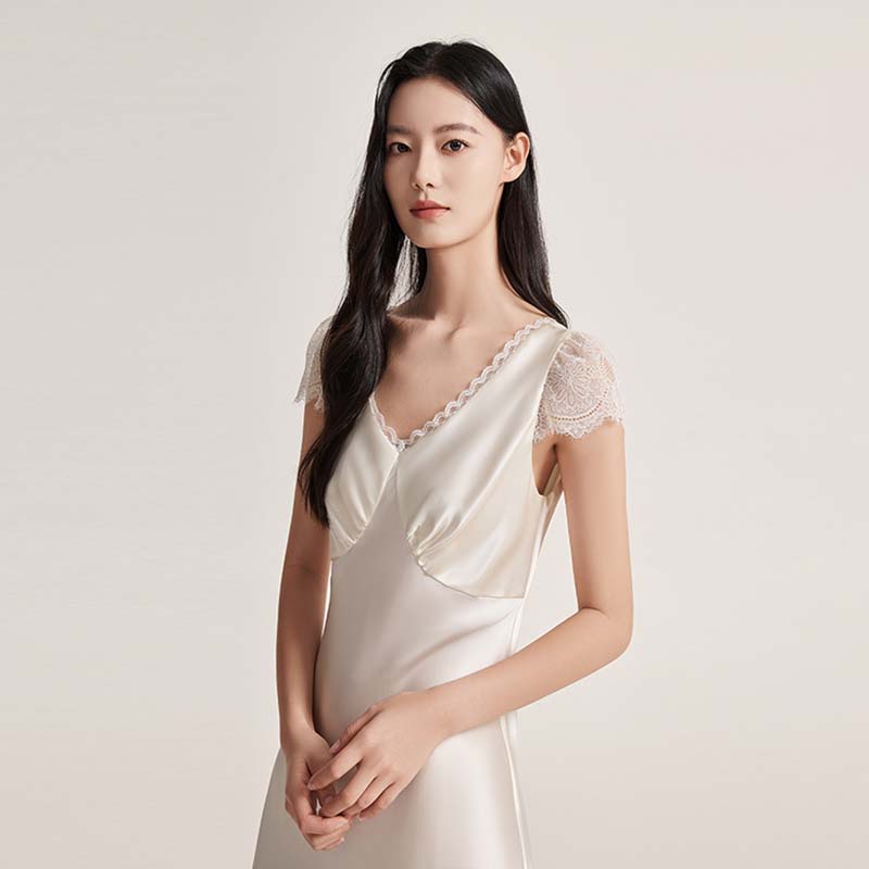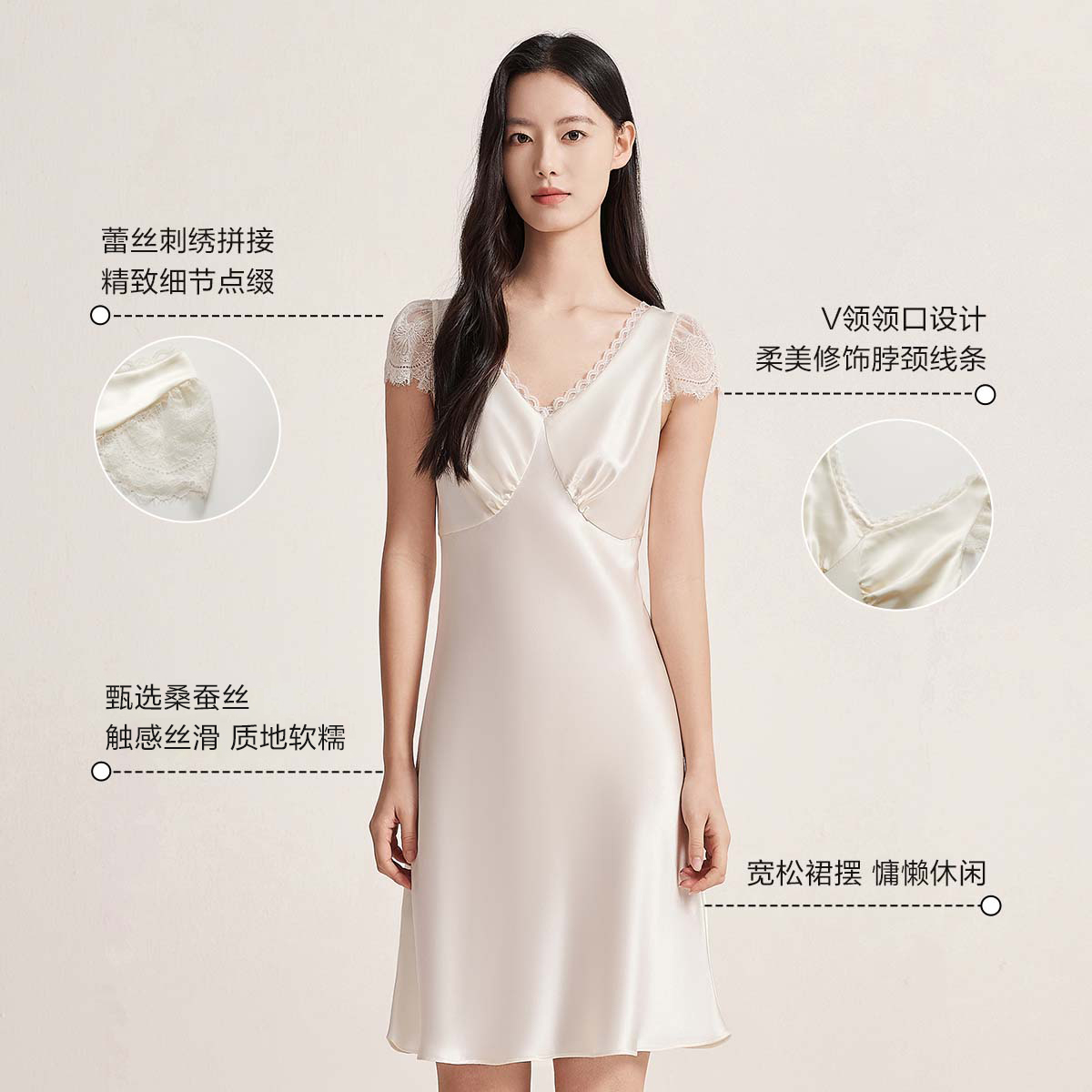 Wensli 月光星河 万事利万事利真丝睡衣睡裙女桑蚕丝蕾丝吊带裙
