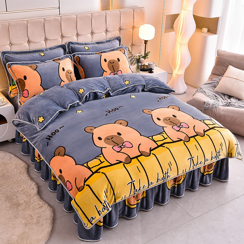无印良品全棉床单学生宿舍纯棉卡通儿童被套秋冬三件套床上用品