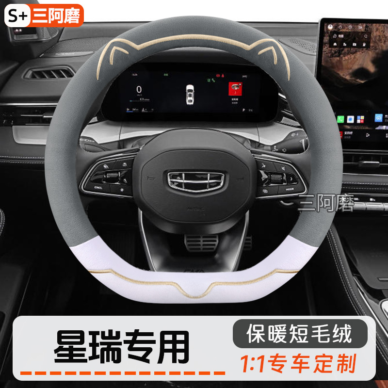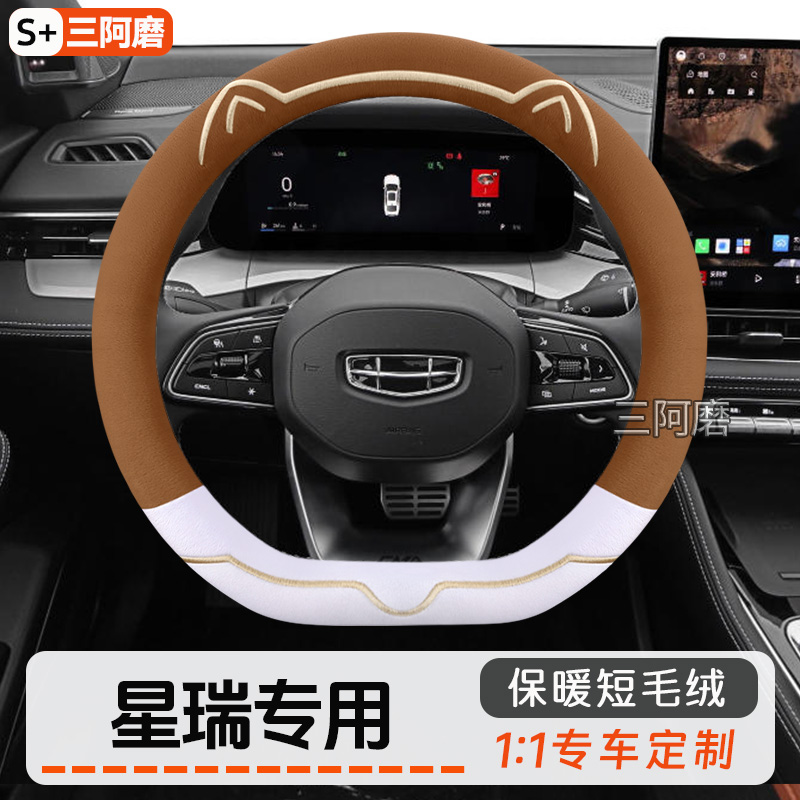 适用2026款 保暖短毛绒可爱猫耳朵汽车把套女 吉利星瑞方向盘套冬季