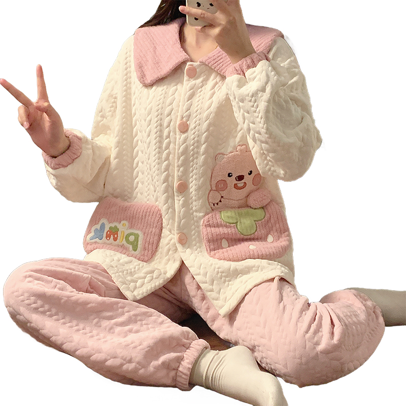 冬天加厚可爱家居服套装 长袖 2025新款 猫人空气棉夹层睡衣女秋冬季