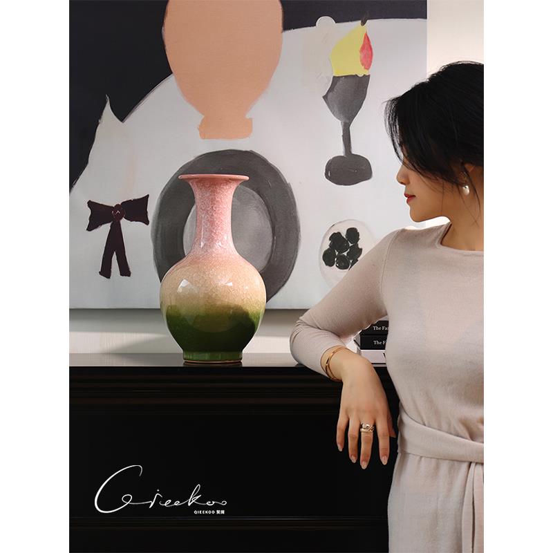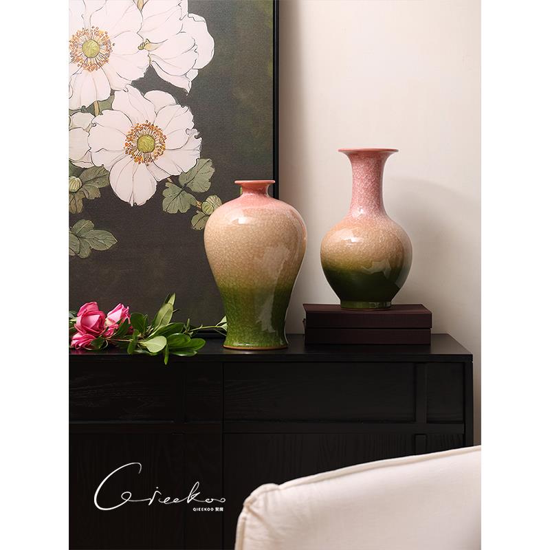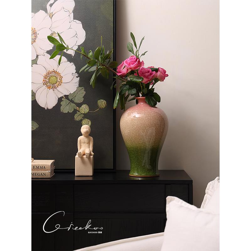 契阔家居新中式 饰桌面摆件 插花客厅玄关冰裂纹古风陶瓷花瓶花器装
